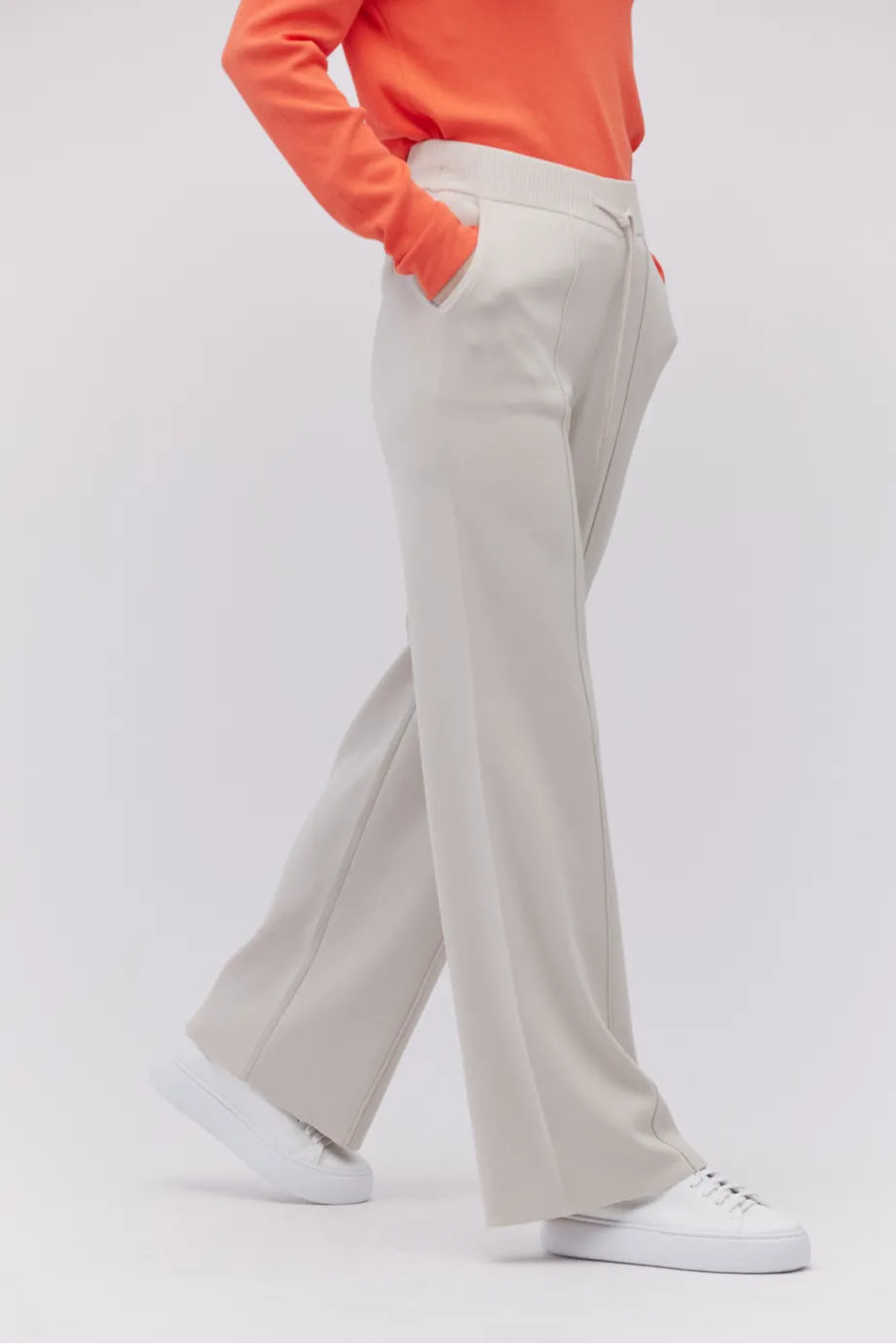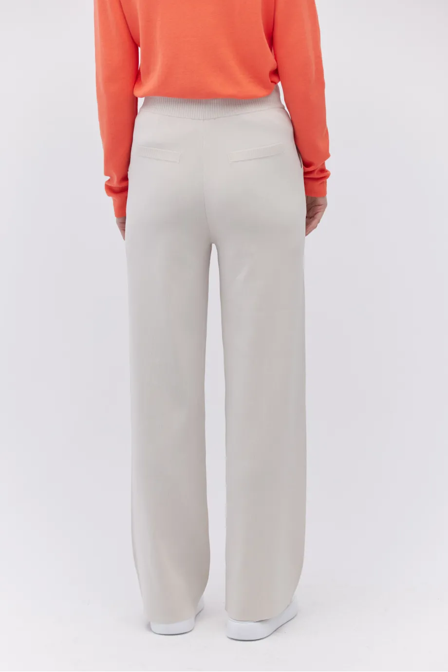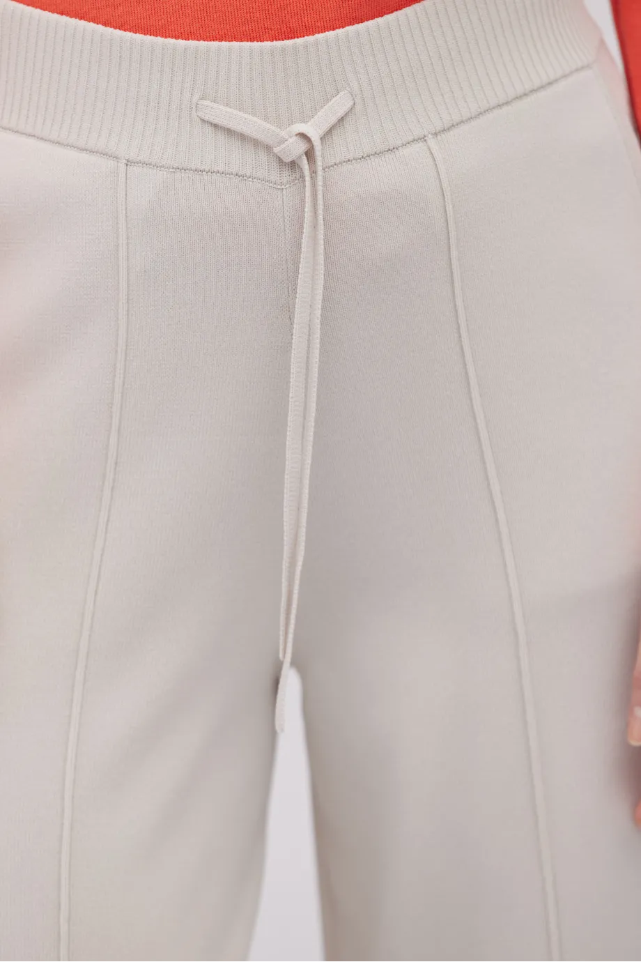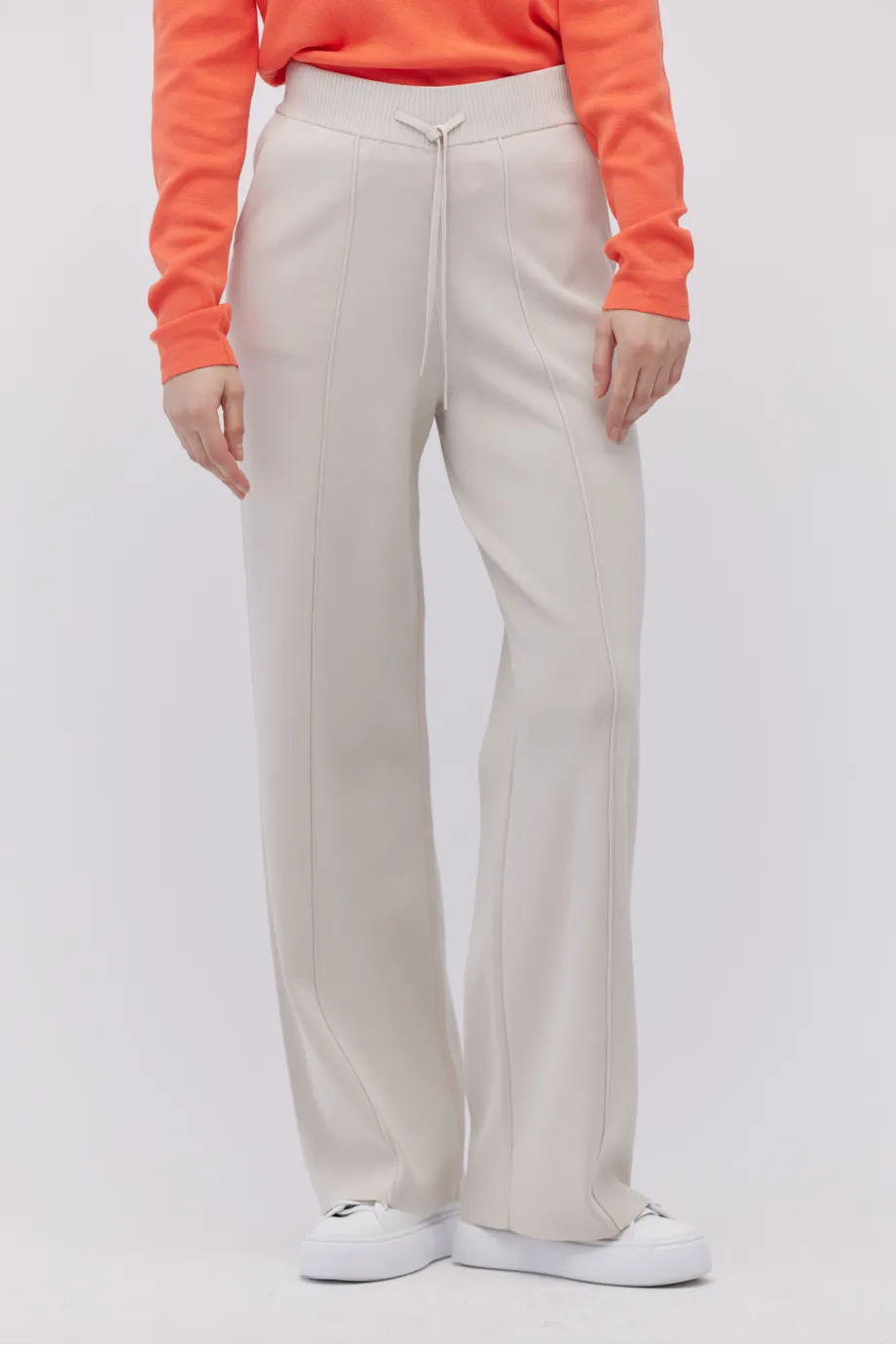 Pantaloni tricotați cu croiala pantalonului largă, în nuanță bej piatră.
