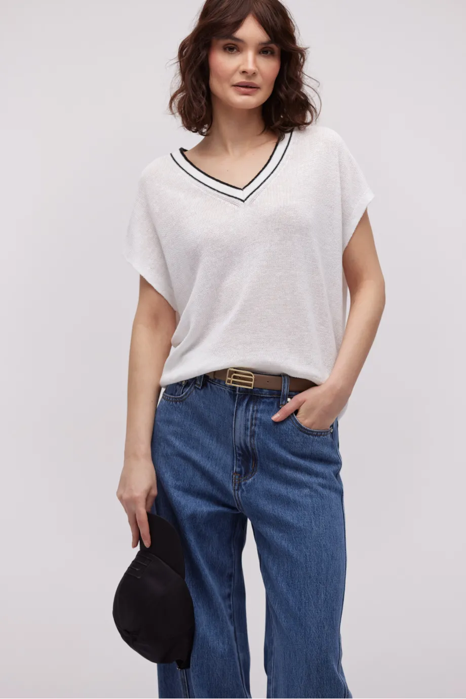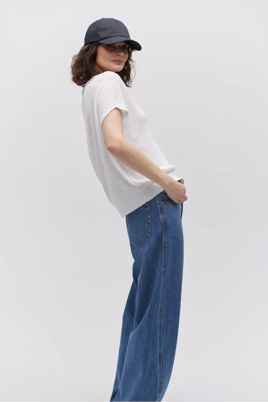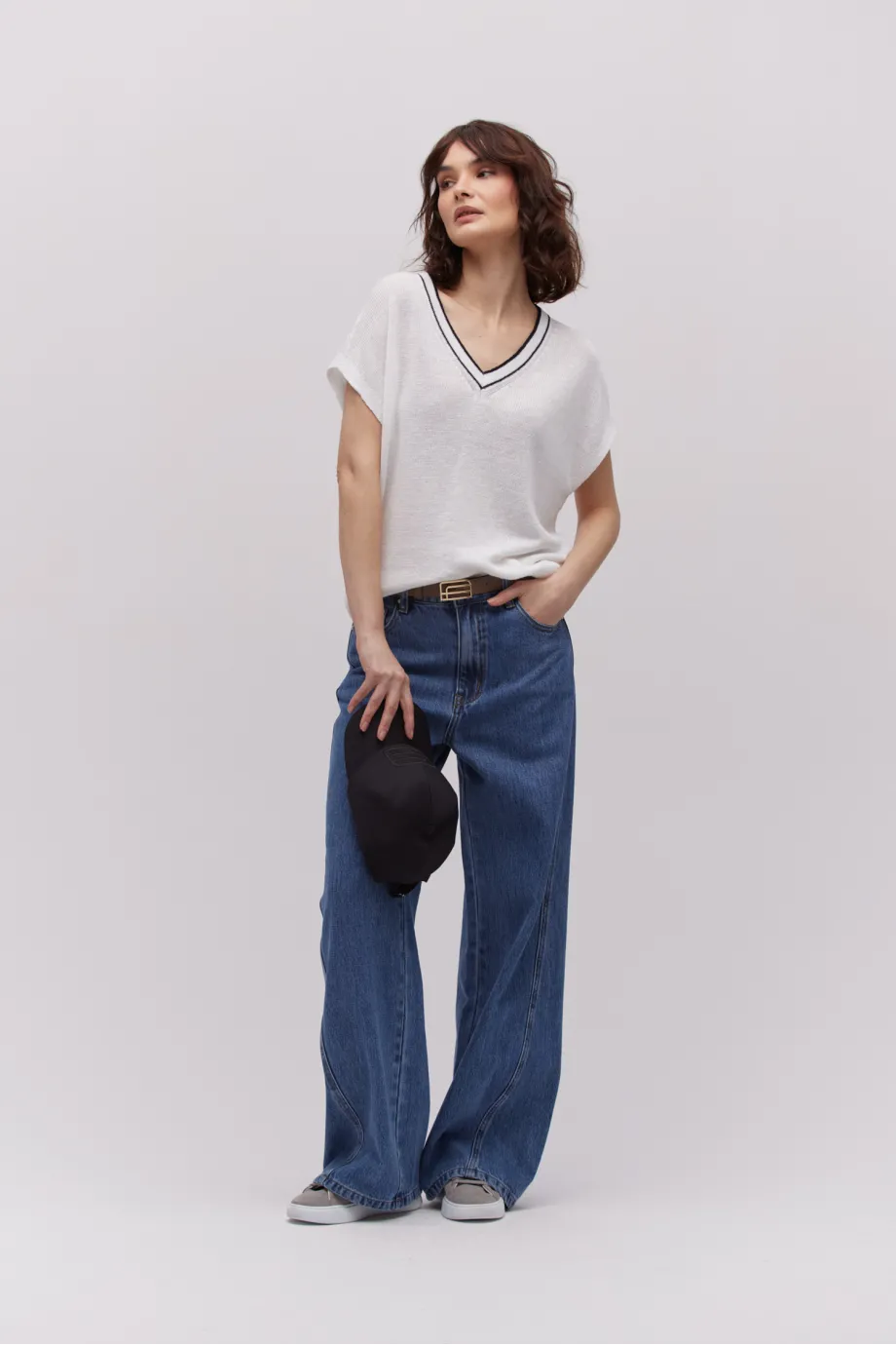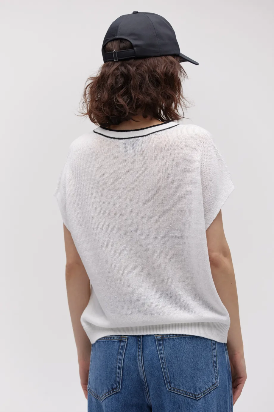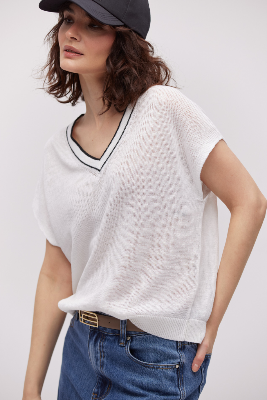 Confecționat din tricot simplu (plain knit), pe mașina 7 GG.