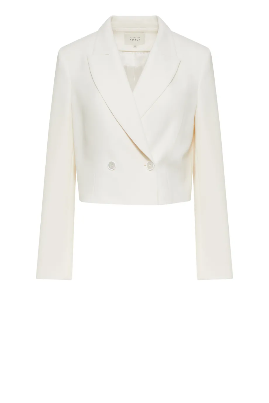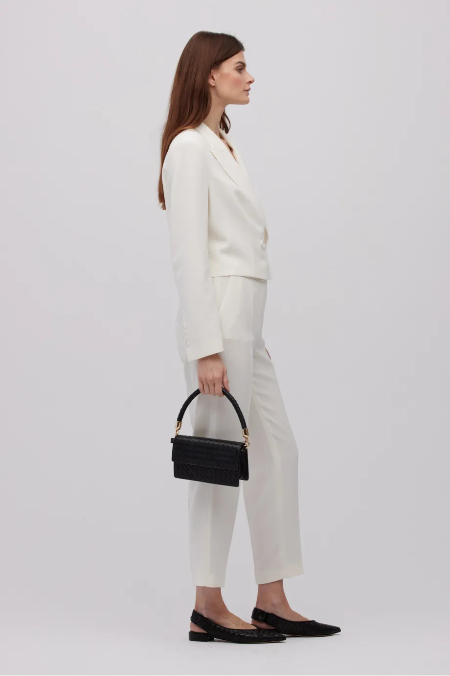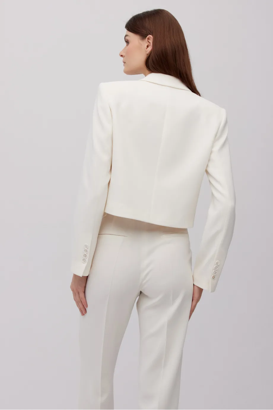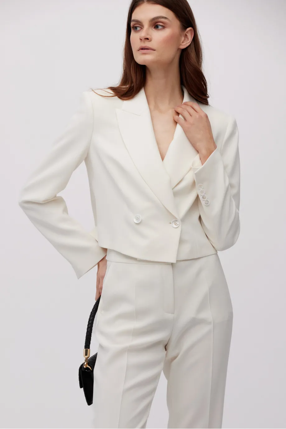 - Bolerou crem cu formă lejeră, tip cutie, cu linia umerilor ușor alungită