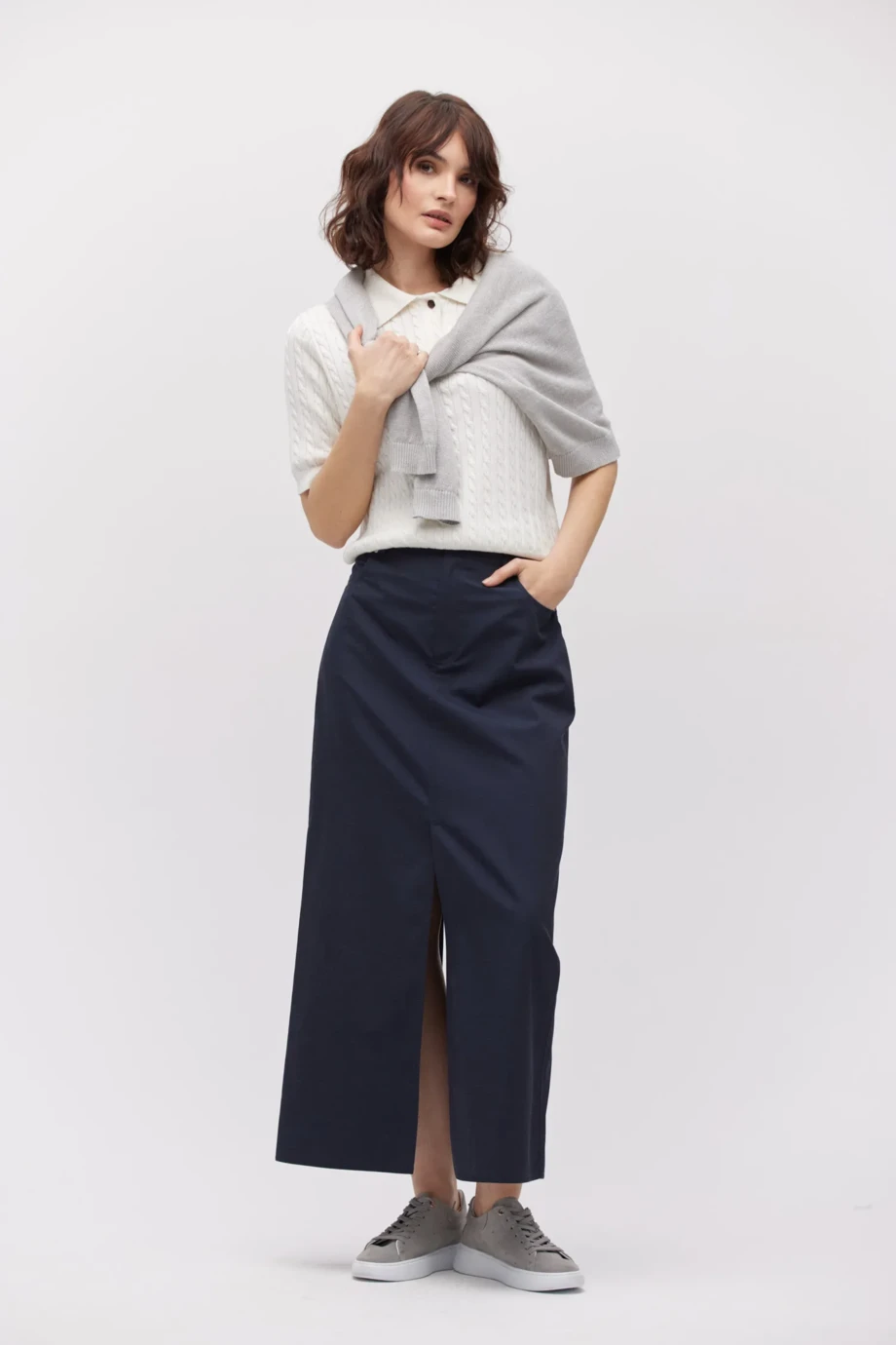 Croială cu buzunare, închidere cu nasture și fermoar, precum și fantă în față și în spate.