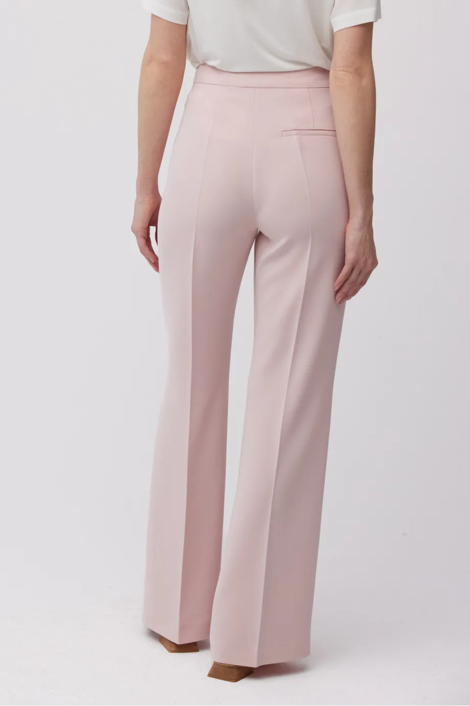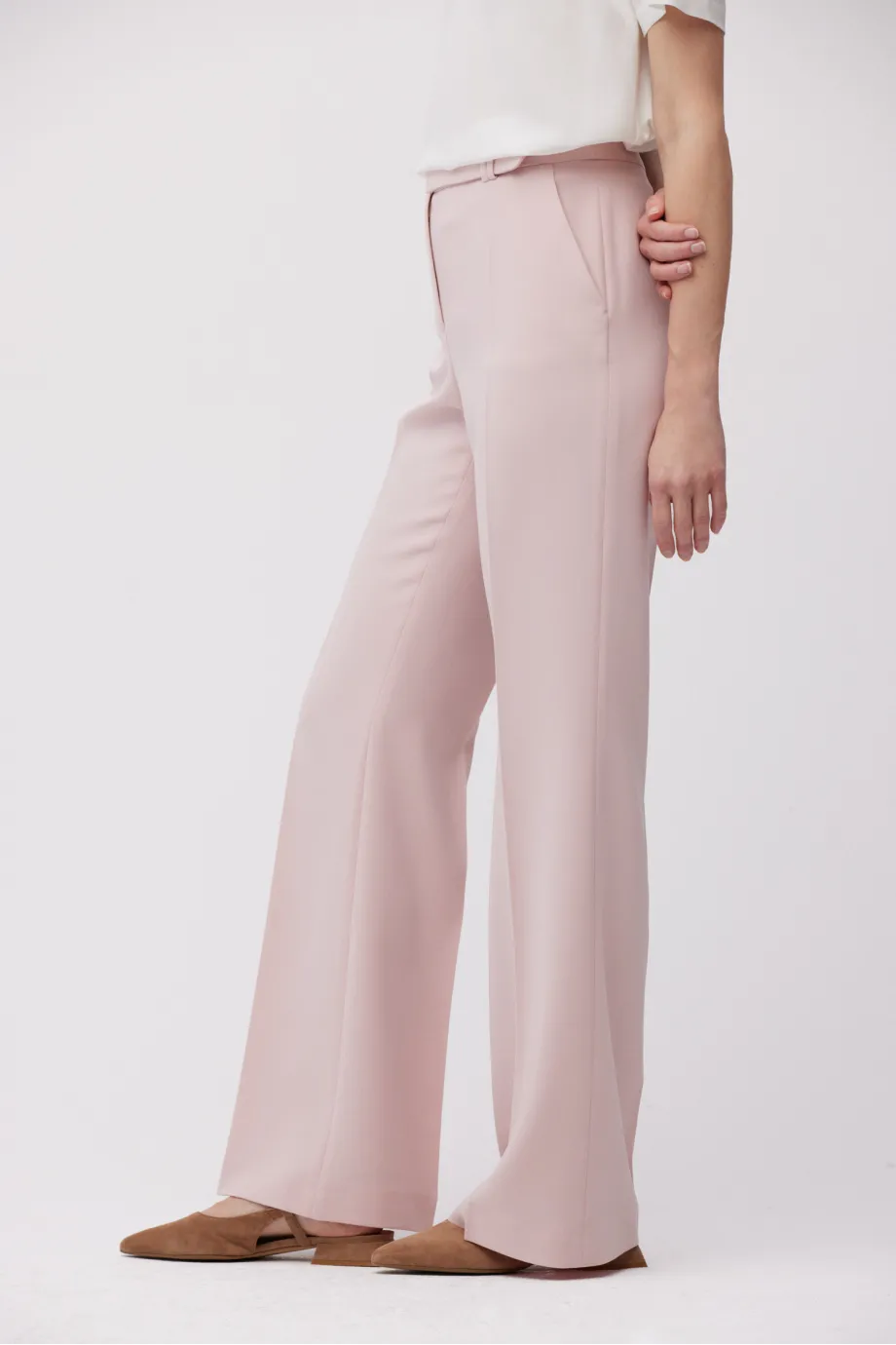 - Pantaloni din amestec de triacetat, mulați în partea superioară și evazați de la genunchi în jos