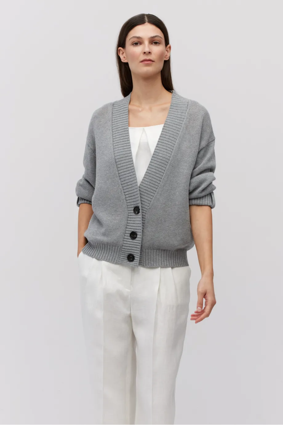 - Cardigan cu in, cu croială lejeră și mâneci lungi