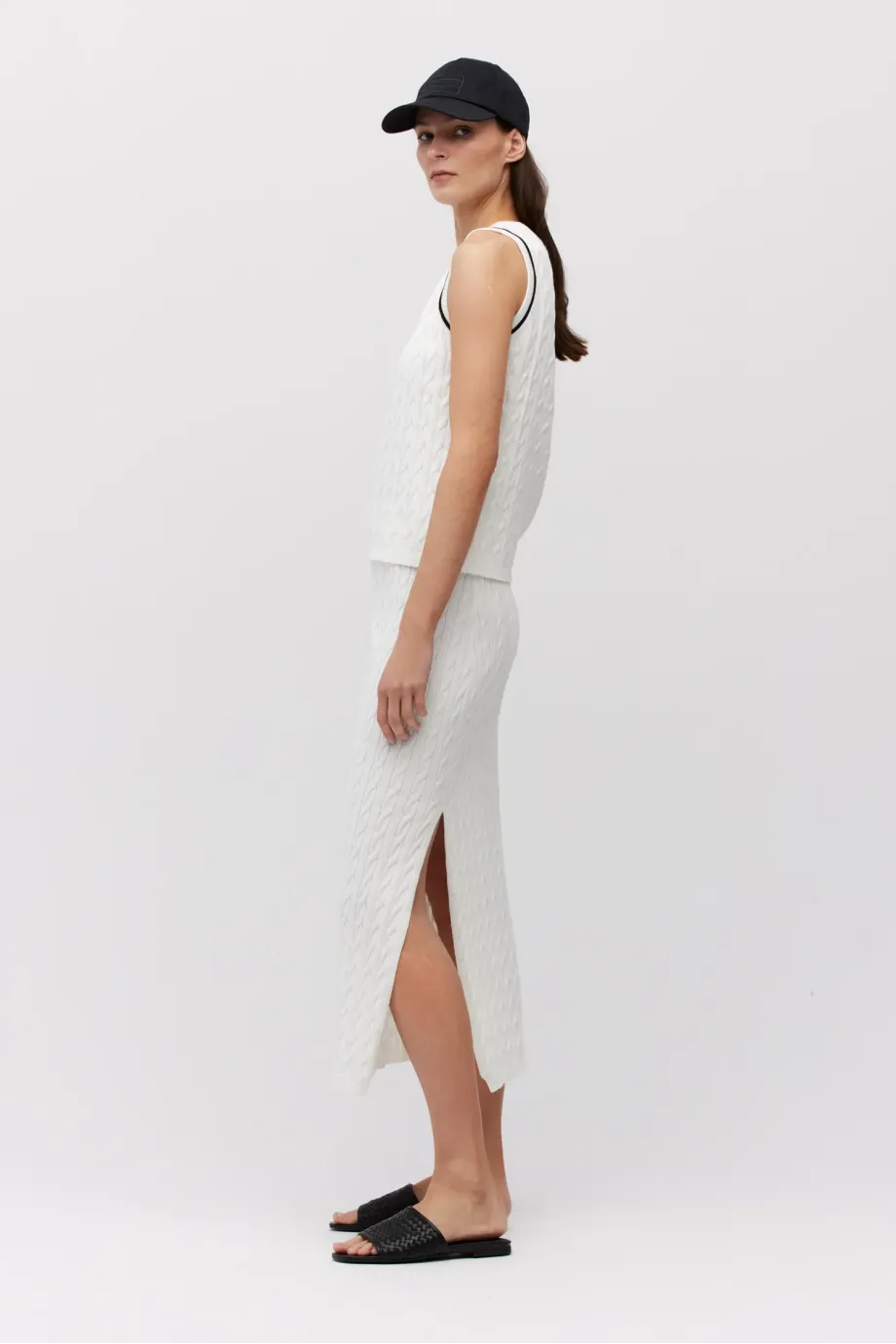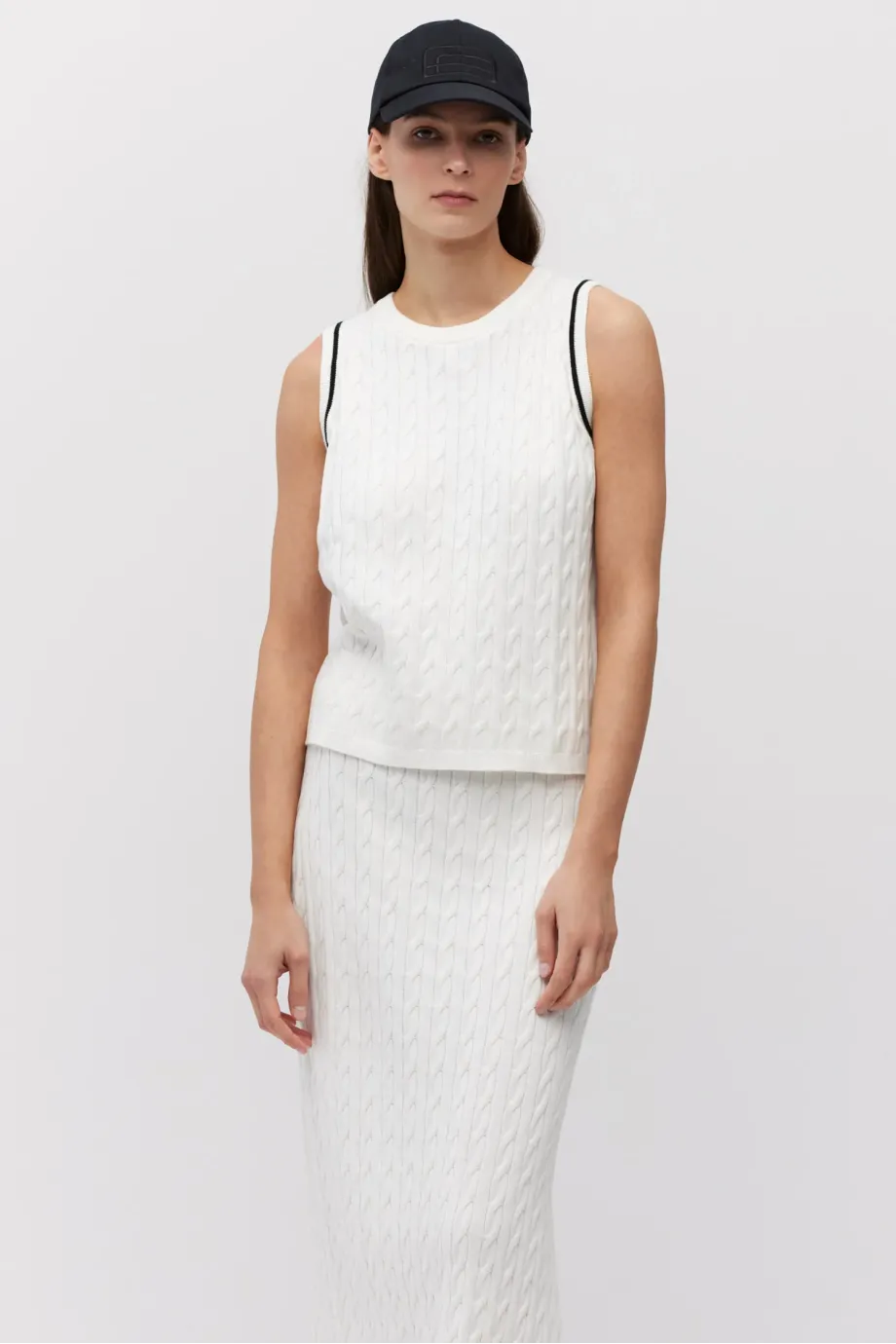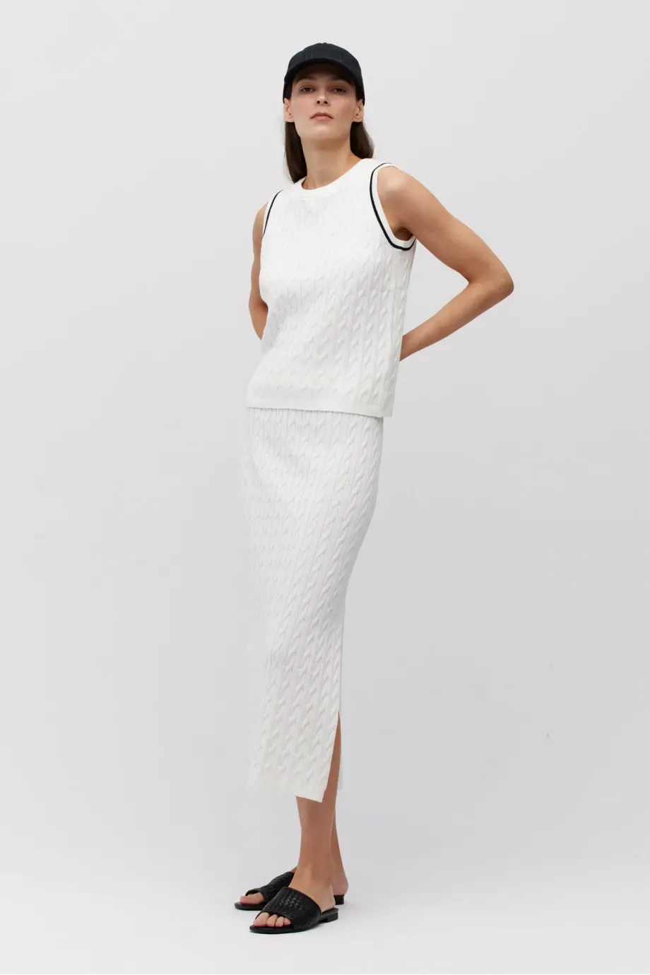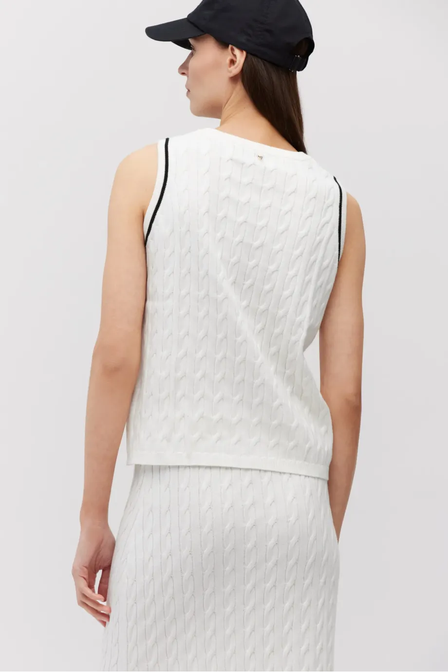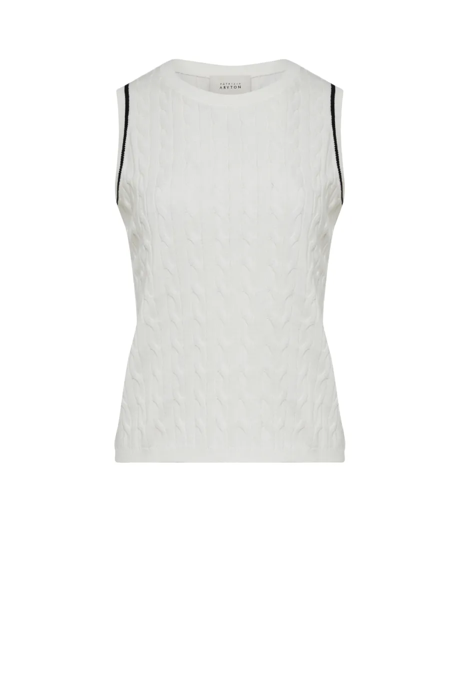 - Top din bumbac alb, tricotat cu împletitură, confecționat la mașină 12 GG