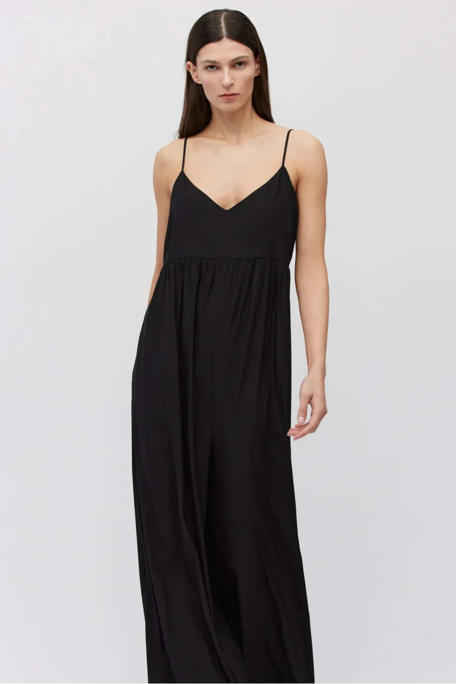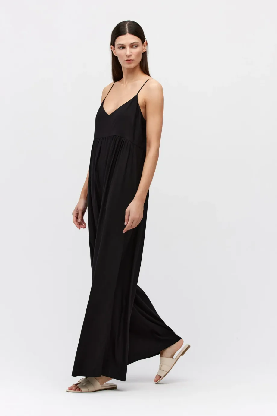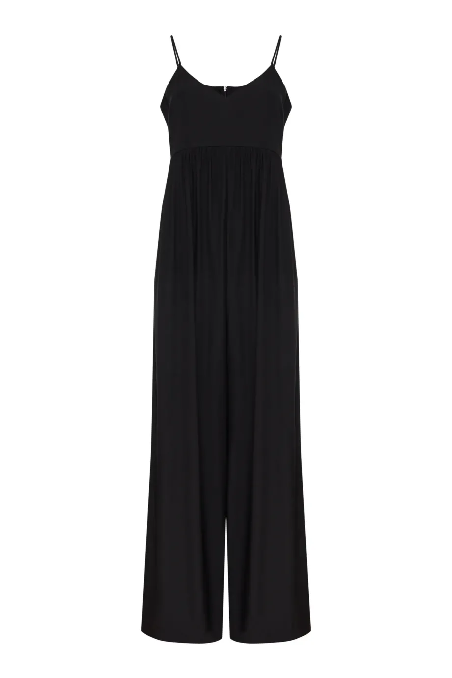 Salopetă neagră din mătase cu bretele subțiri