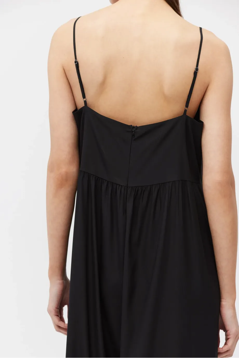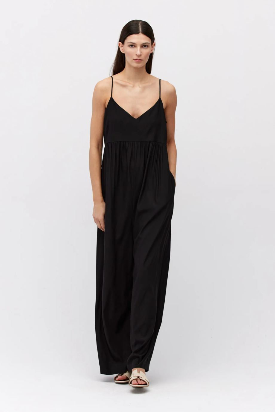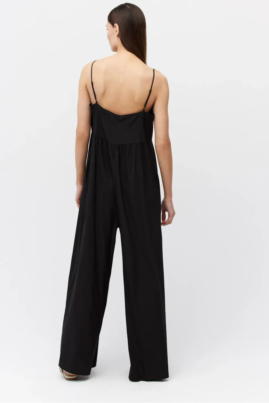 Salopetă neagră din mătase cu bretele subțiri