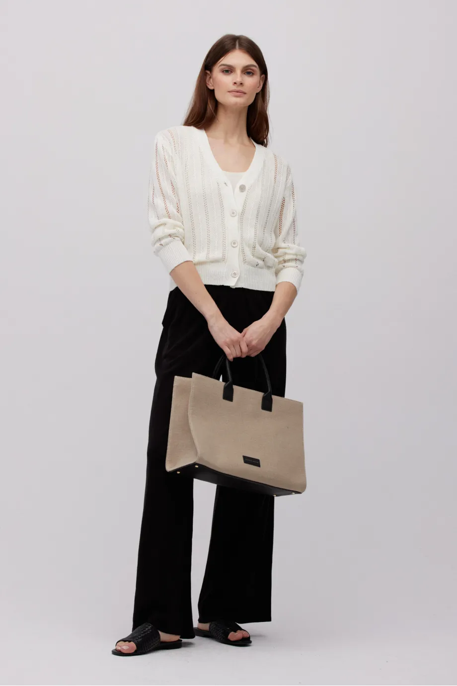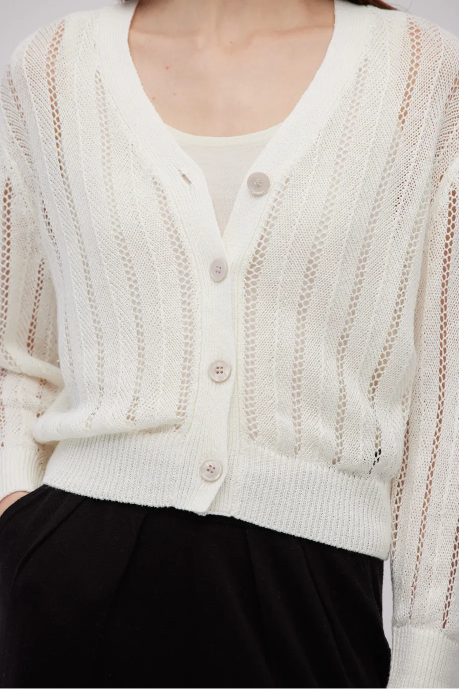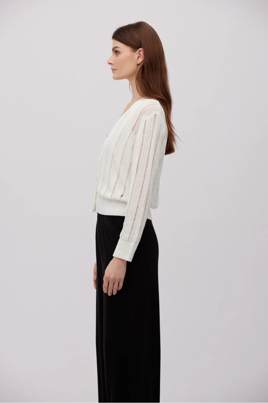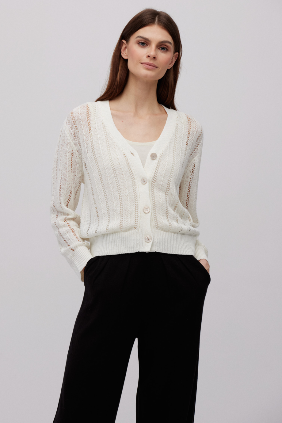 - Cardigan scurt confecționat din in de înaltă calitate, cu țesătură jacquard