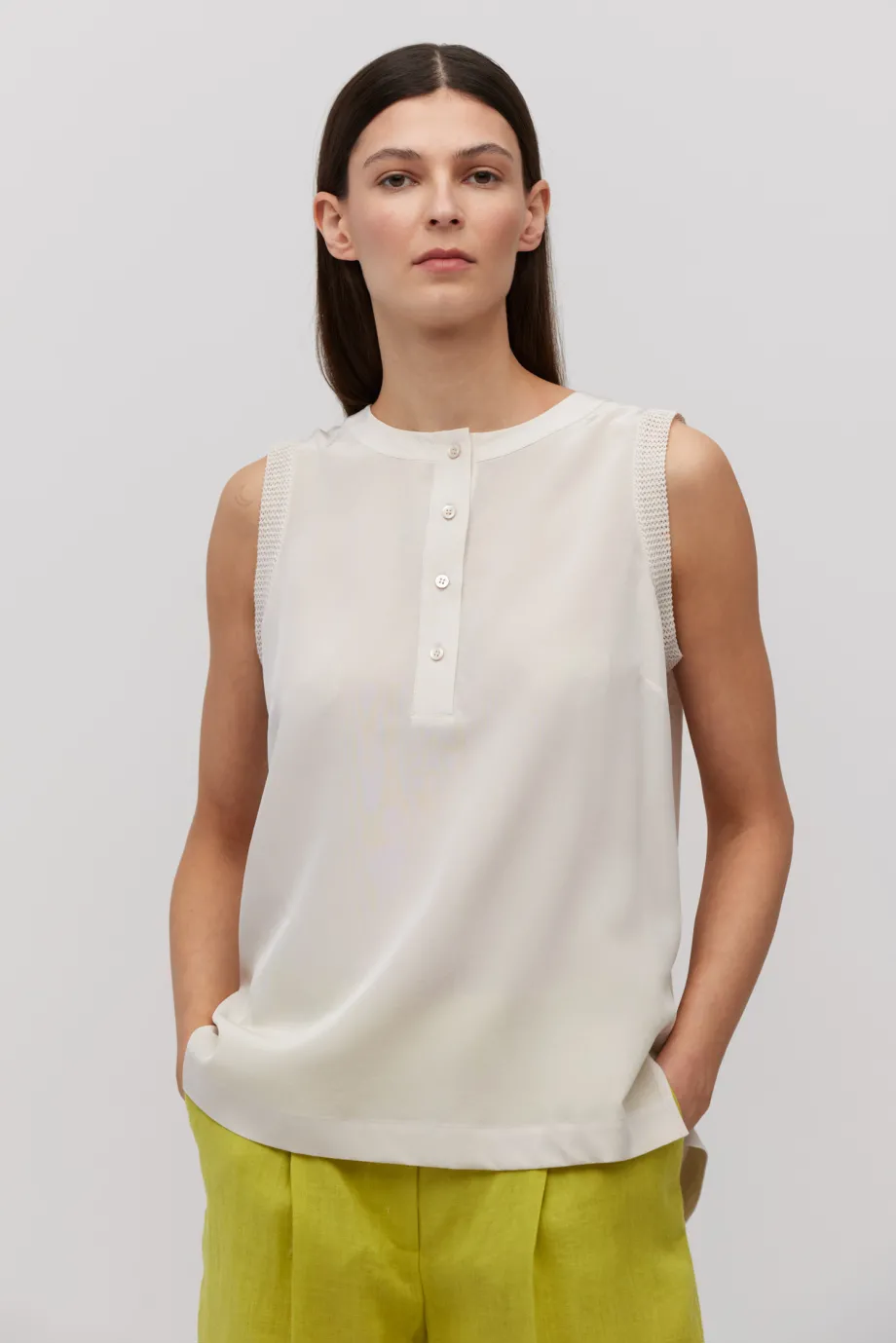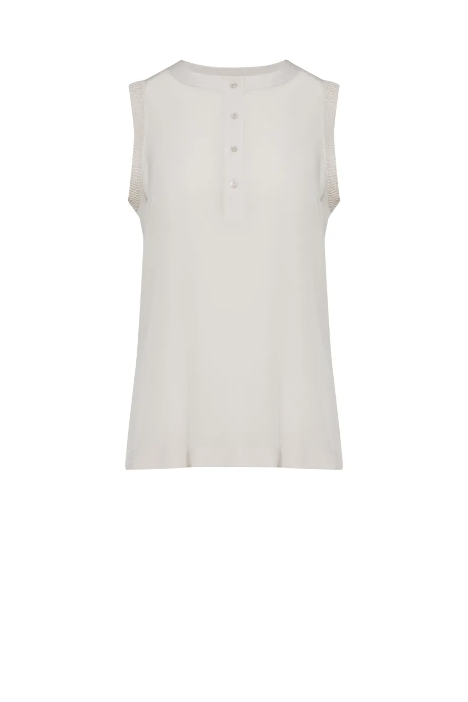 - Bluză gri fără mâneci, cu guler și închidere cu nasturi