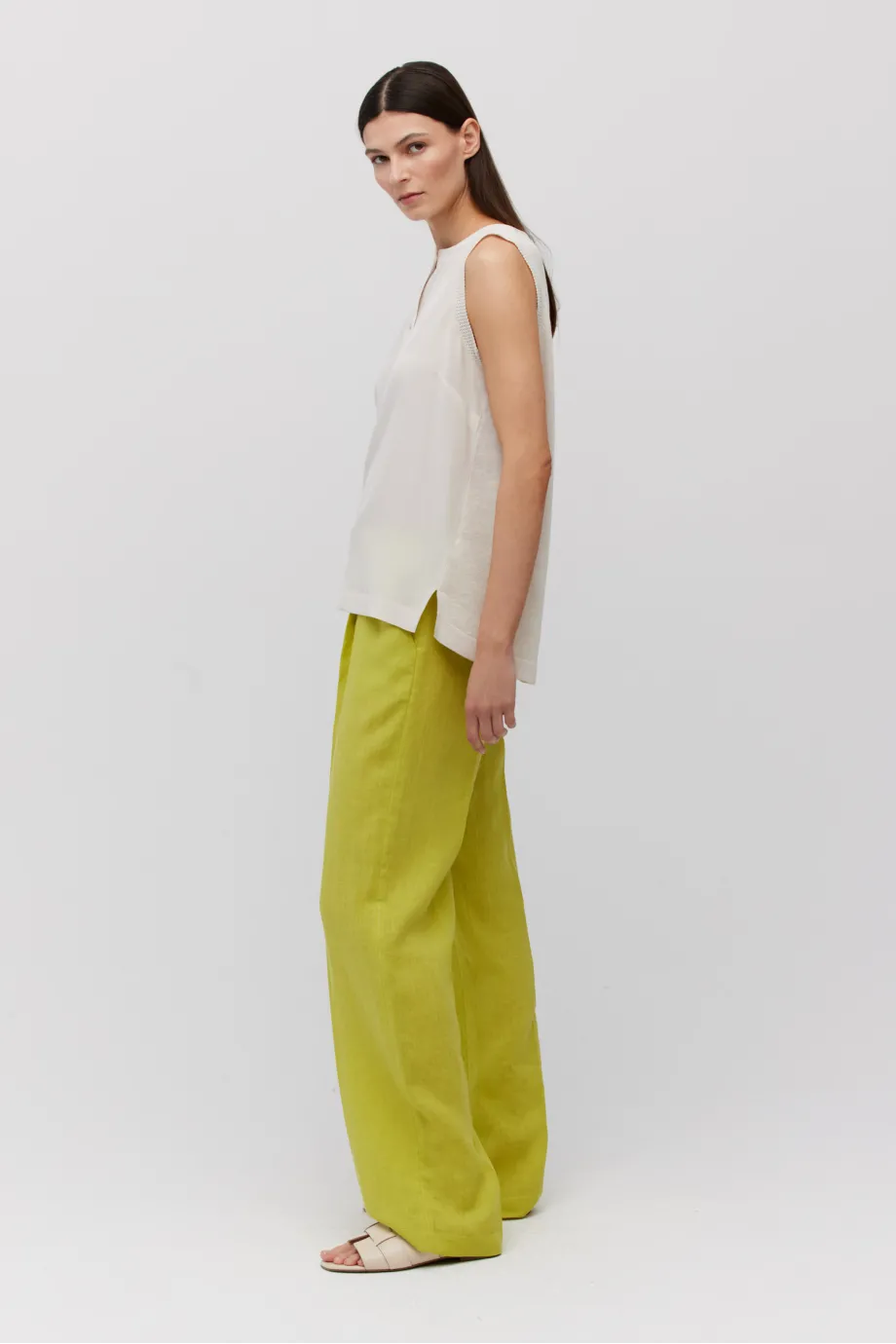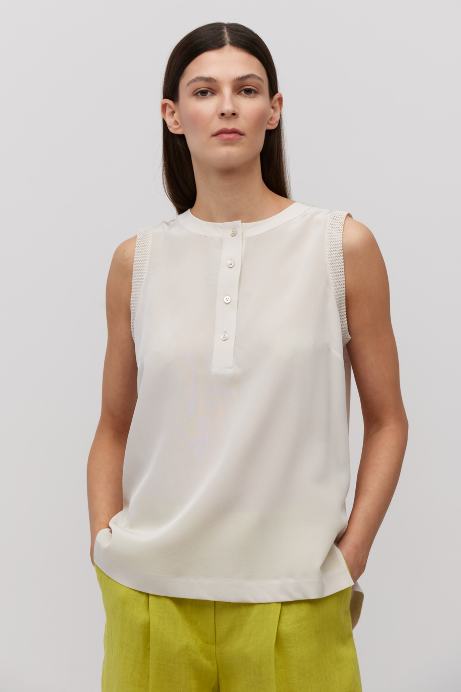 Bluză fără mâneci bej din mătase