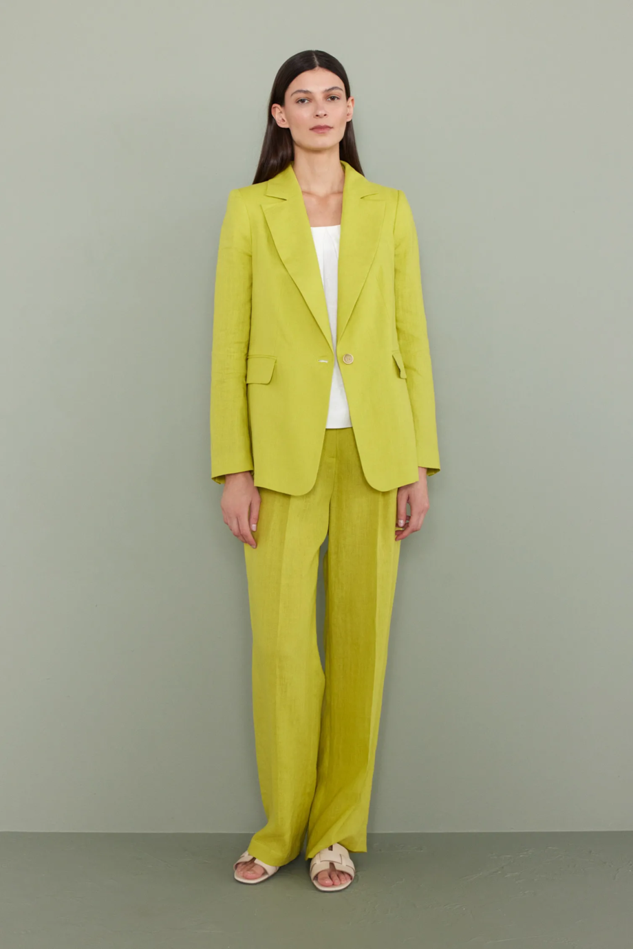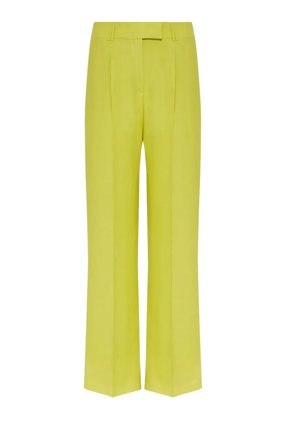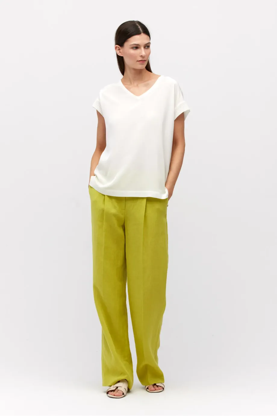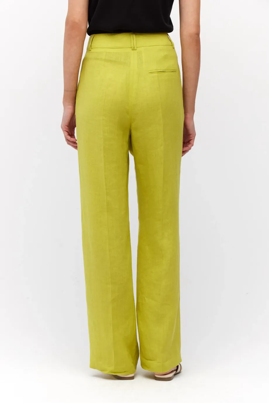 - Pantaloni largi din in, în nuanțe de lime, cu pliuri