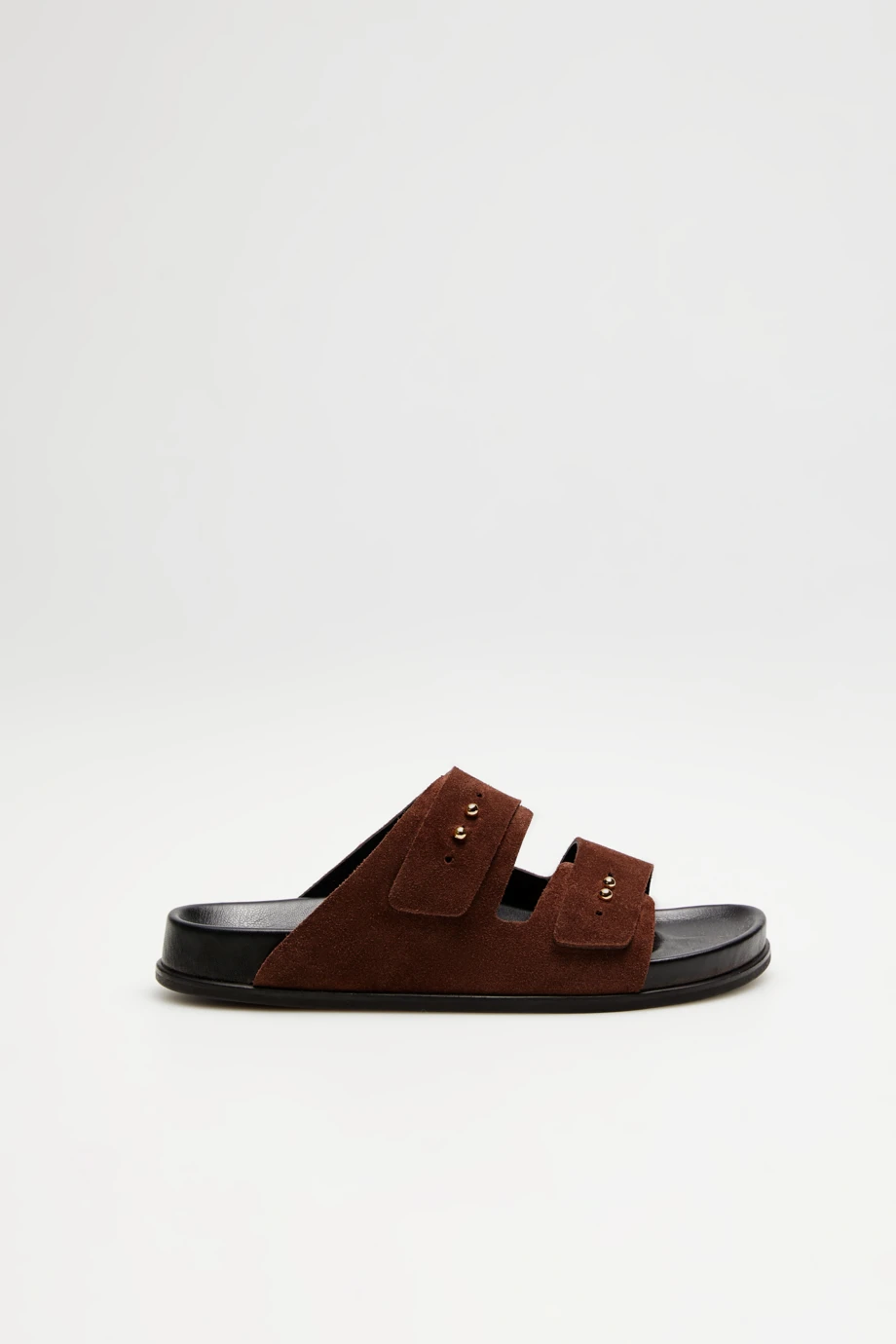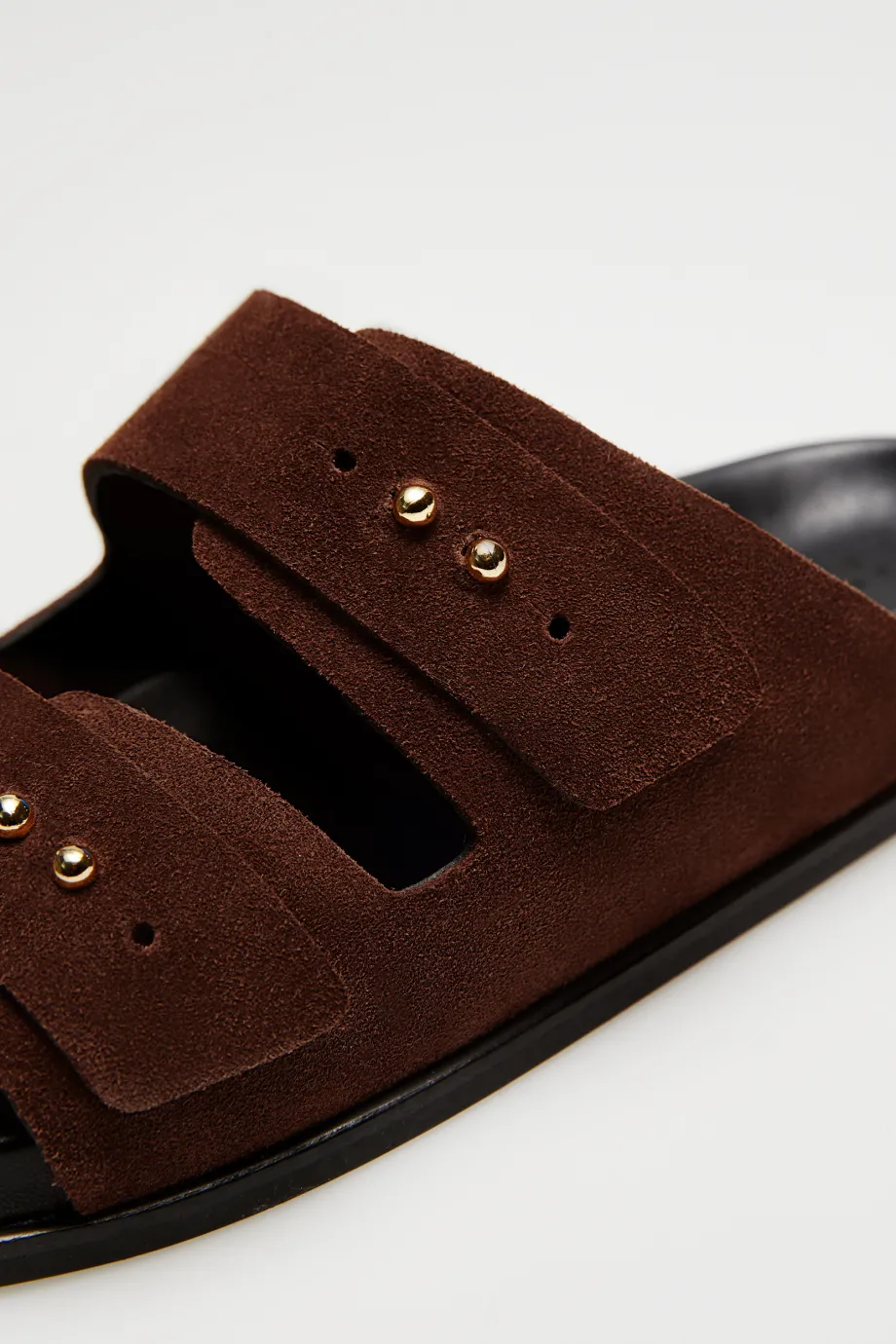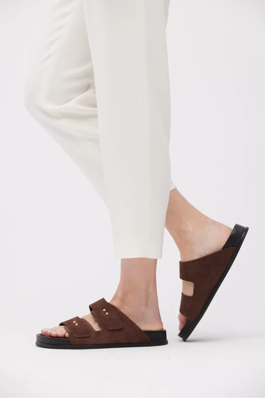Saboți din piele de căprioară, maro, cu două benzi late