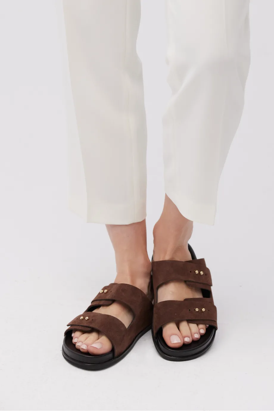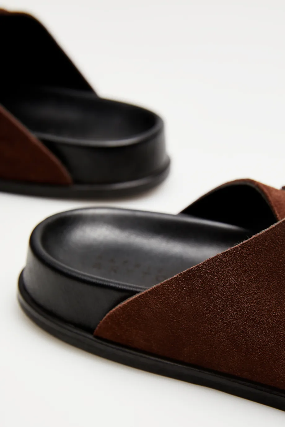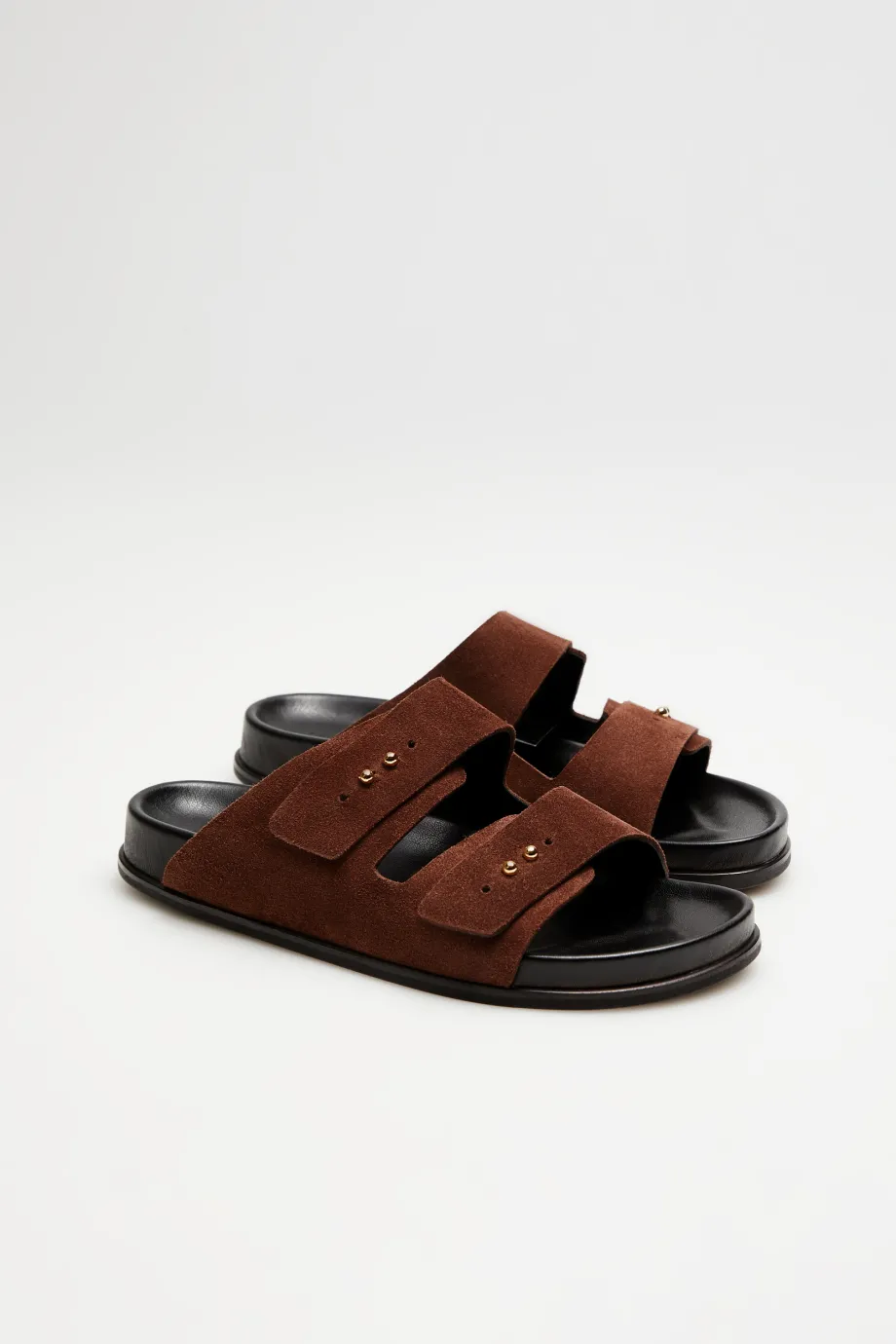 Saboți din piele de căprioară, maro, cu două benzi late