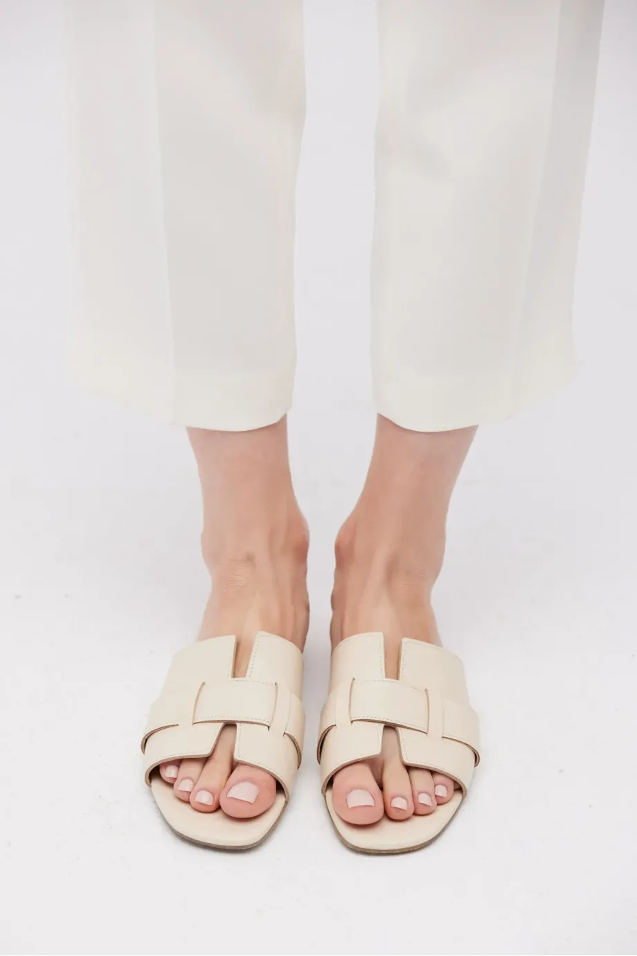 - Saboți crem din piele naturală