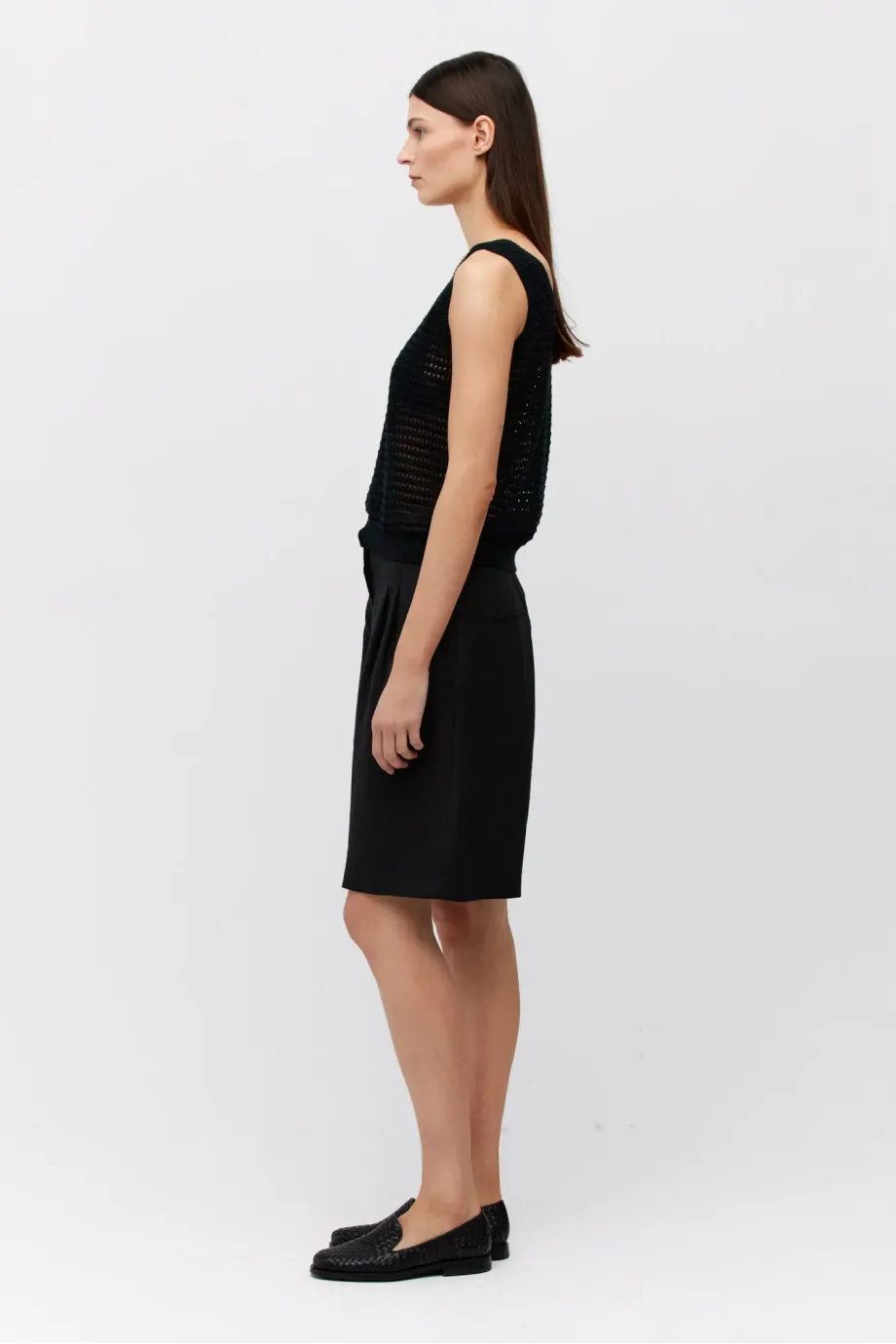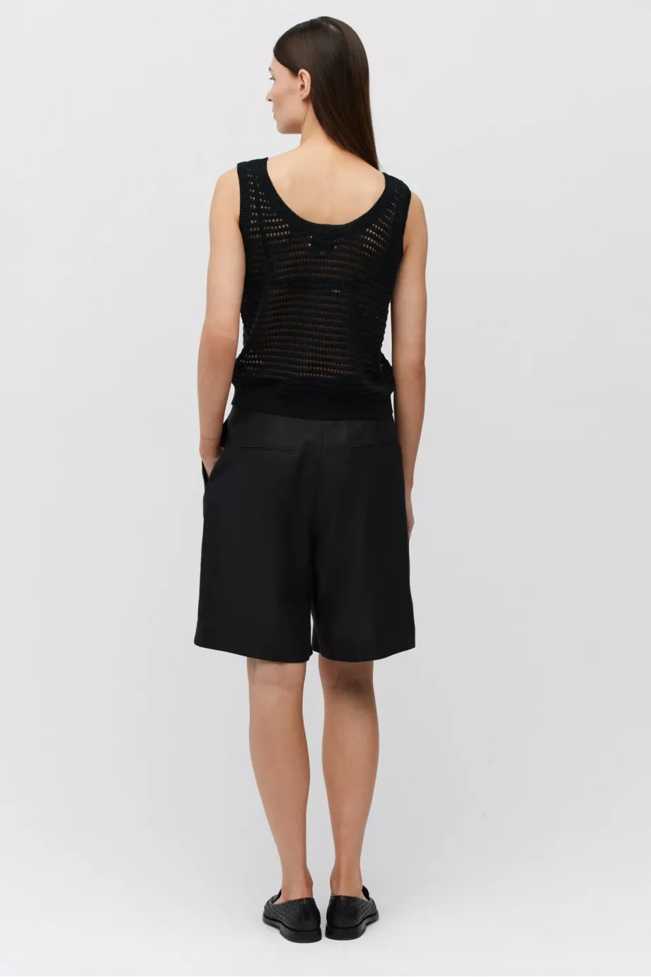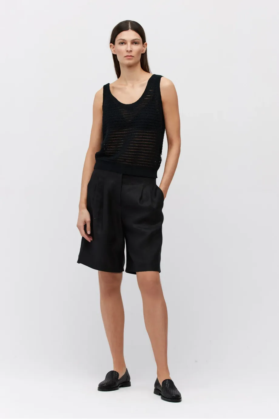 - Pantaloni scurți negri din in