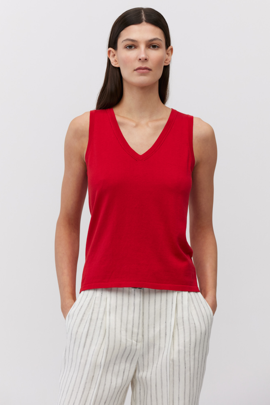 - Top roșu din bumbac și mătase