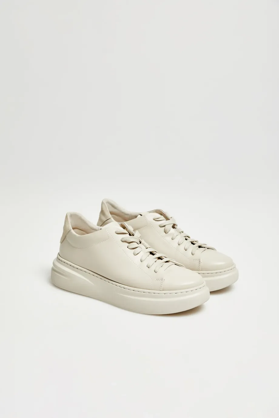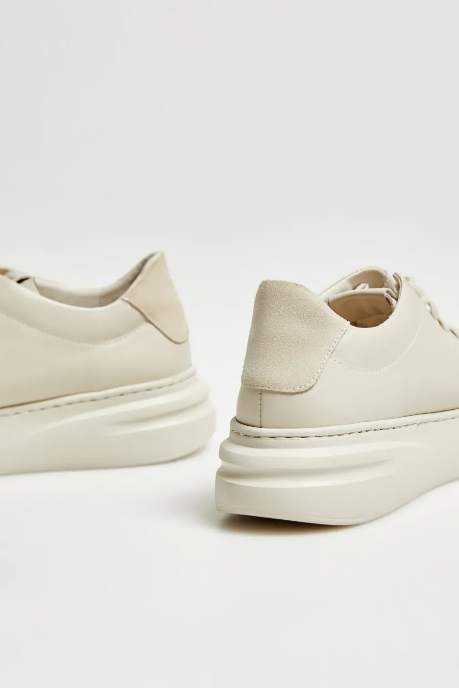 Adidas cu platformă, din piele naturală, culoare bej. Șiret clasic. Talpă cu branț moale. Fabricați manual în Polonia.