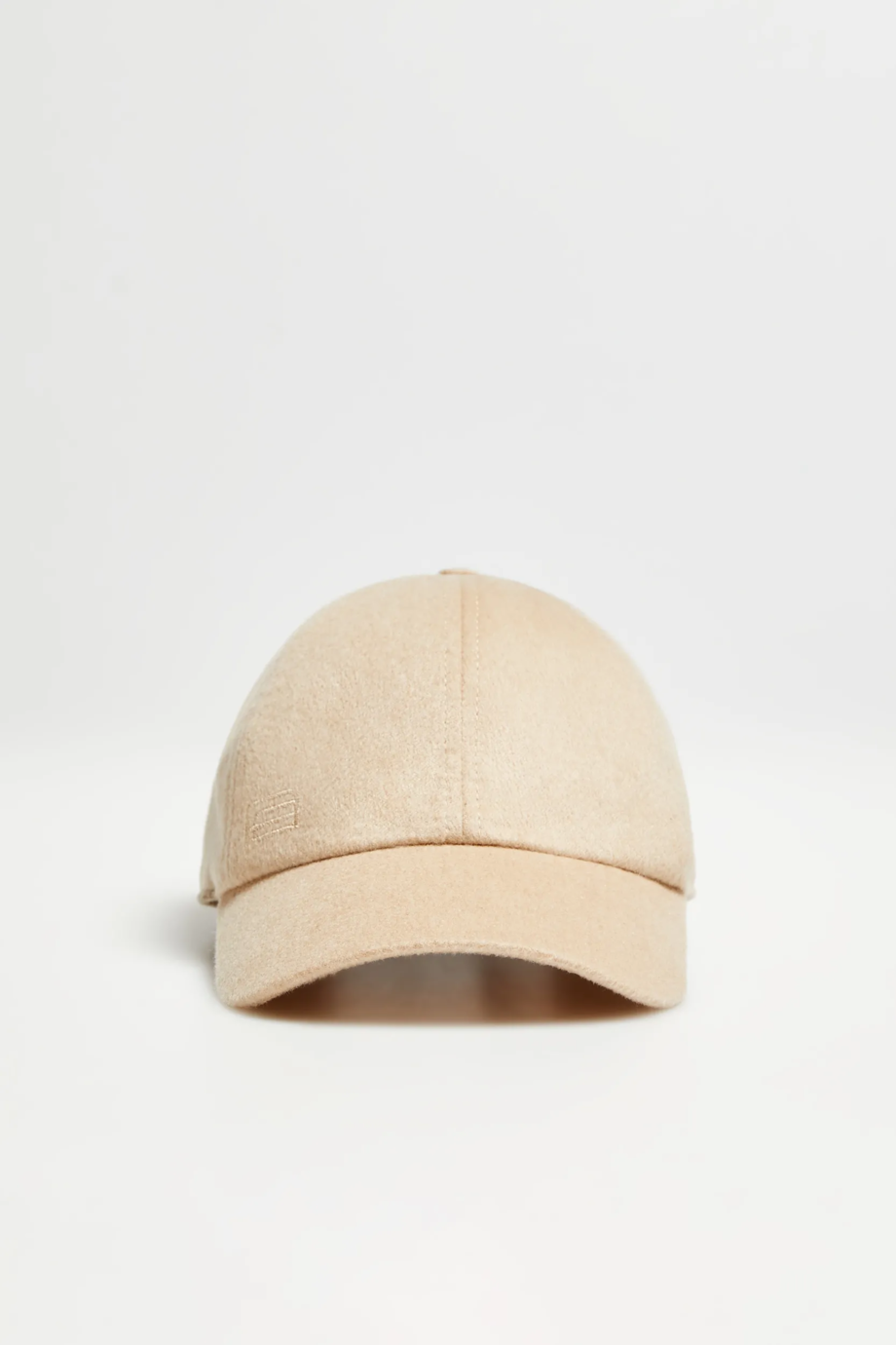 Șapcă din lână de cămilă "albino", în nuanță naturală de bej. Logo brodat. Închidere reglabilă la spate, din piele naturală.
