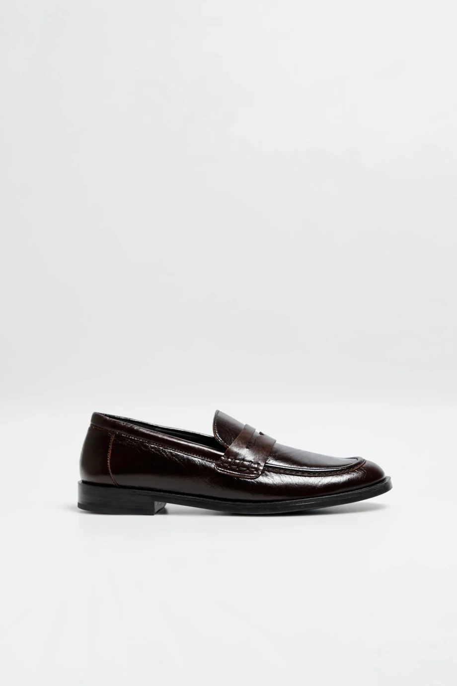 Mocasini cu design minimalist și bandă penny distinctă. Confecționați din piele naturală cu bob, de înaltă calitate, în nuanță adâncă de vinete. Confecționați manual într-o manufactură spaniolă.
