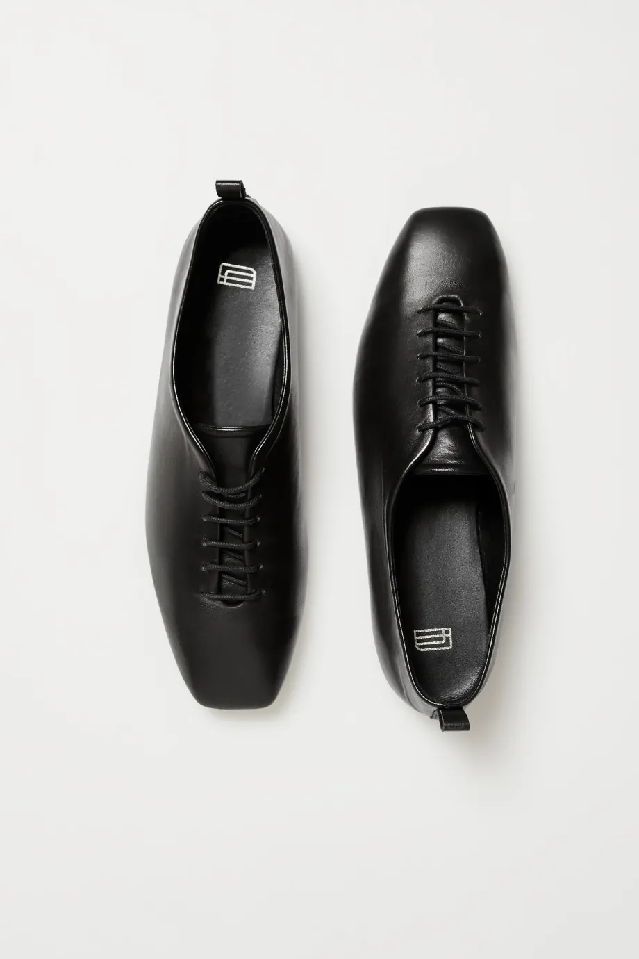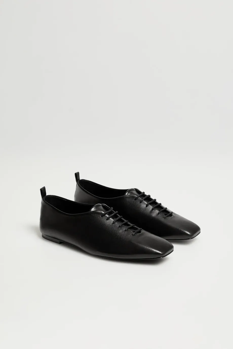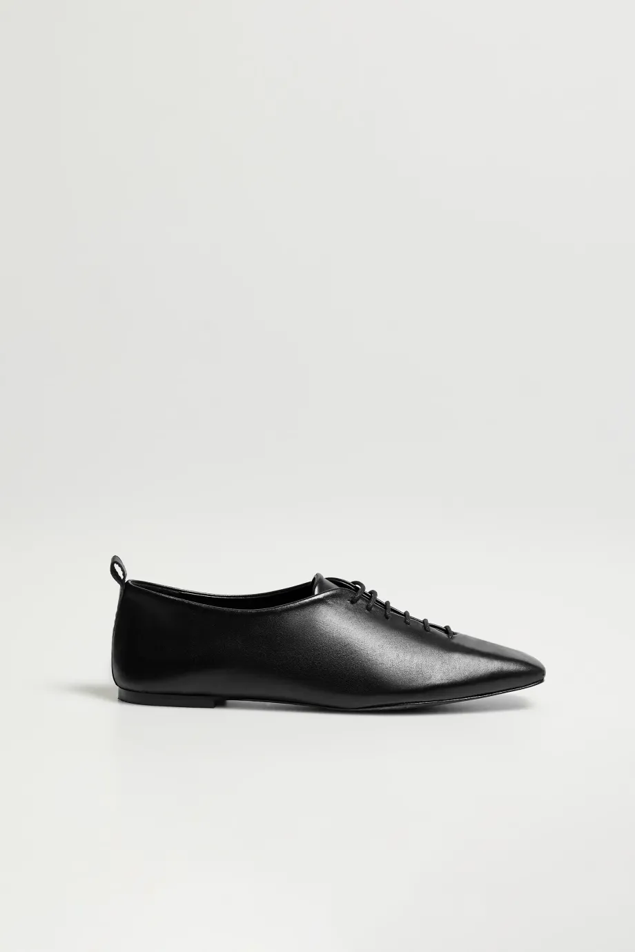 Pantofi casual confecționați din piele naturală moale. Partea joasă, cu șireturi pe toată lungimea. Vârf migdalată, ușor alungit. Căptușeală și branț din piele. Talpă subțire și flexibilă. Model cu construcție ușoară. Cusuți manual într-o manufactură spaniolă.