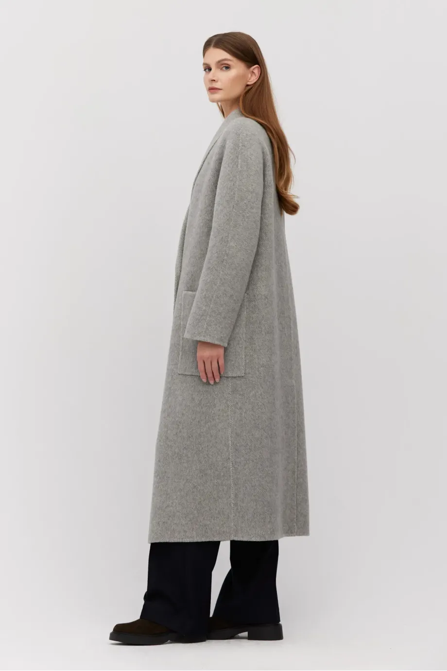 Pardesiu midi gri doubleface din lână alpaca