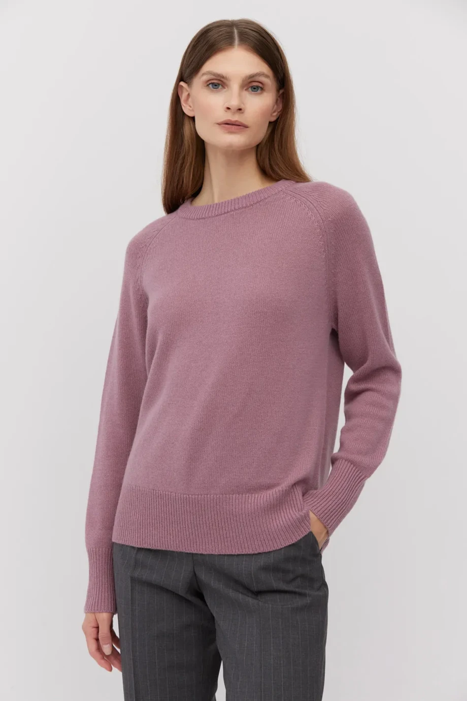 Pulover din amestec de lână merinos și cașmir, cu croială dreaptă și lejeră. Tricot single-jersey, cu decolteu rotund și mâneci lungi. Culoare: mov deschis.