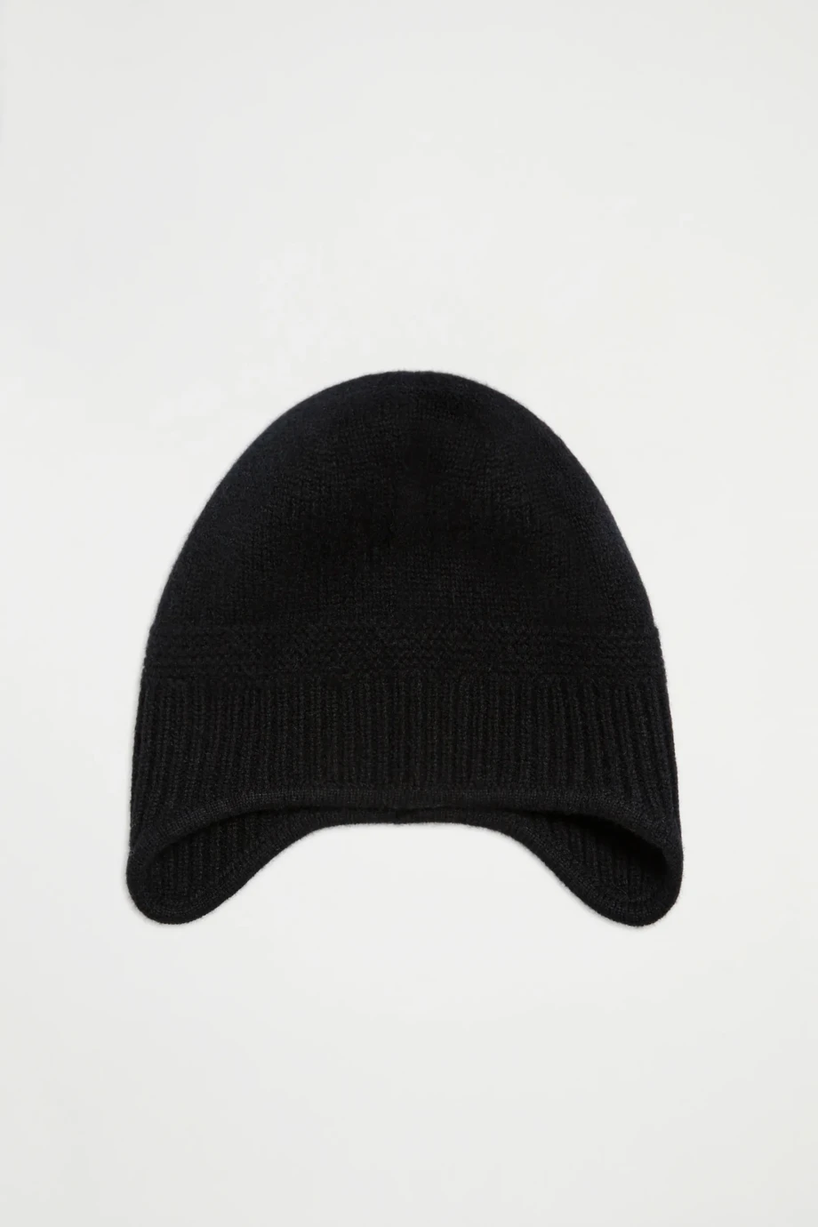 Căciulă din lână merinos și cașmir. Tricot moale, jersey, confecționat la mașină de calibru 3 GG. Culoarea negru.