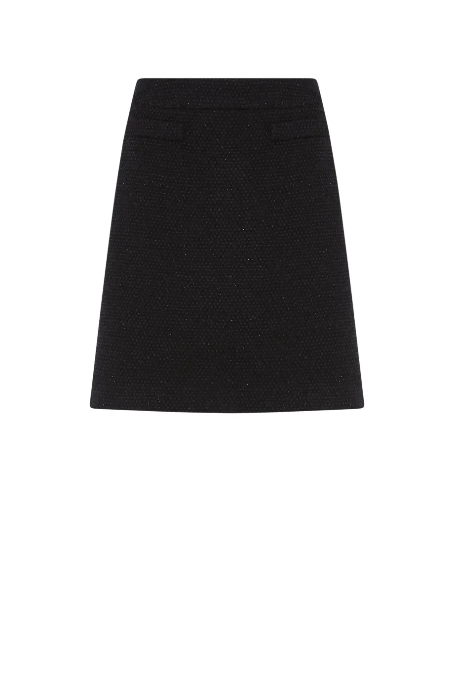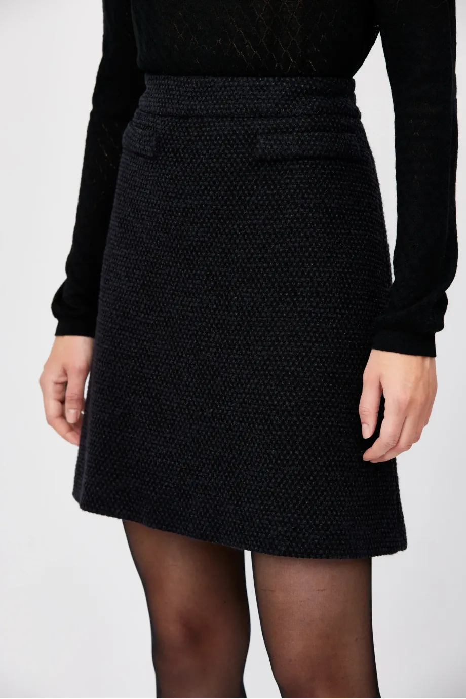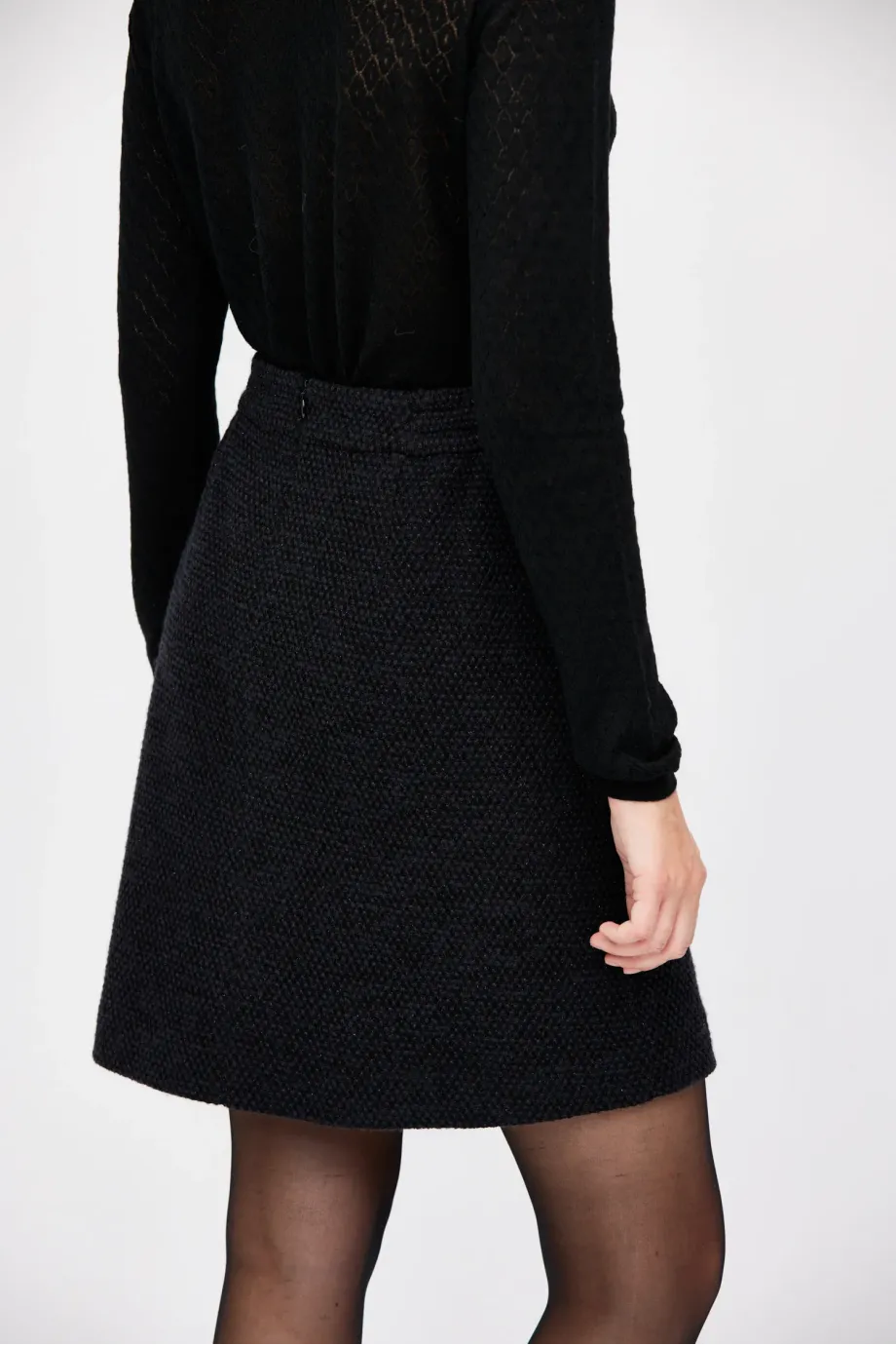Fustă mini neagră cu căptușeală. Țesătură cu amestec de lână. Elastic în talie.