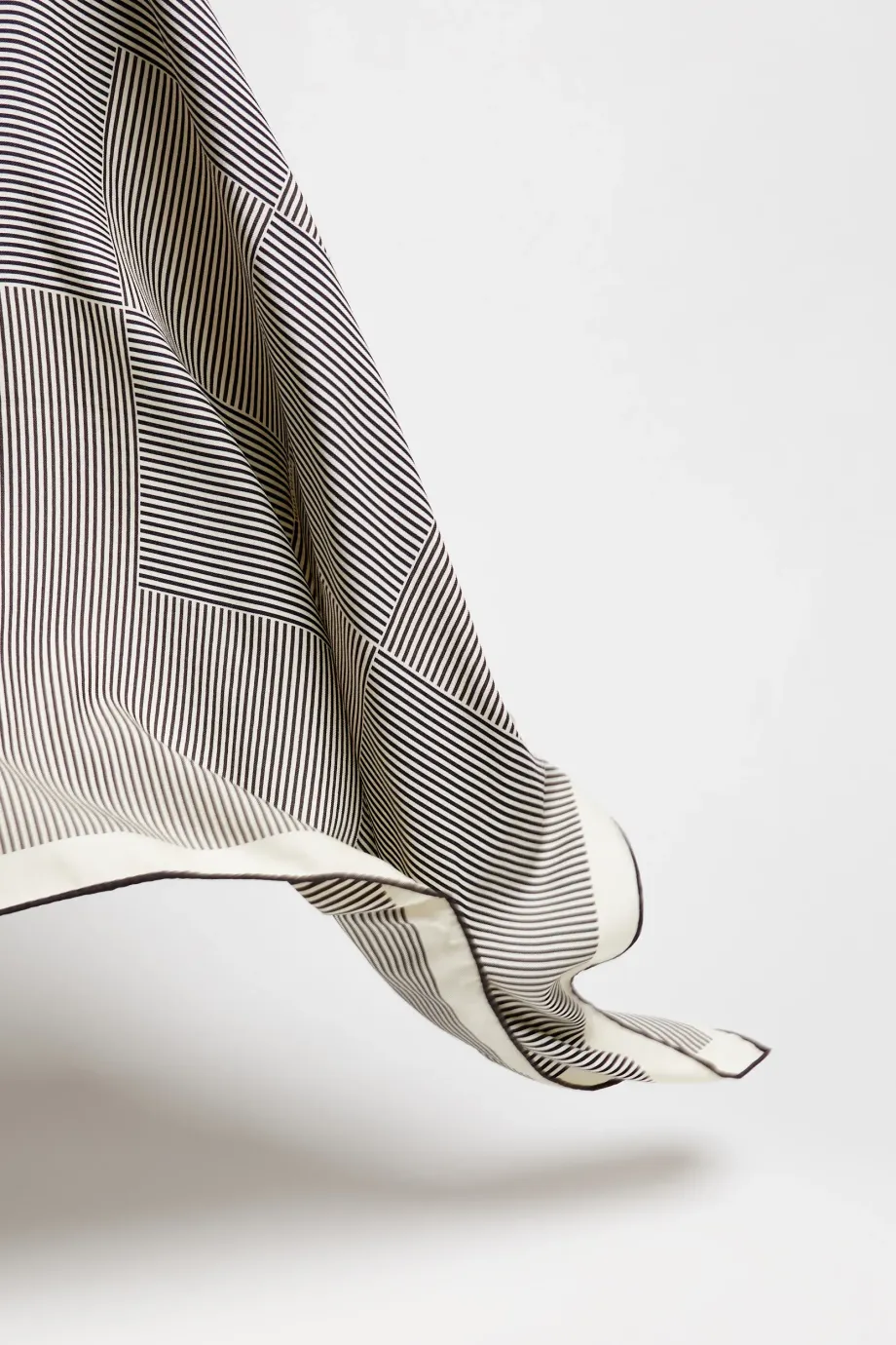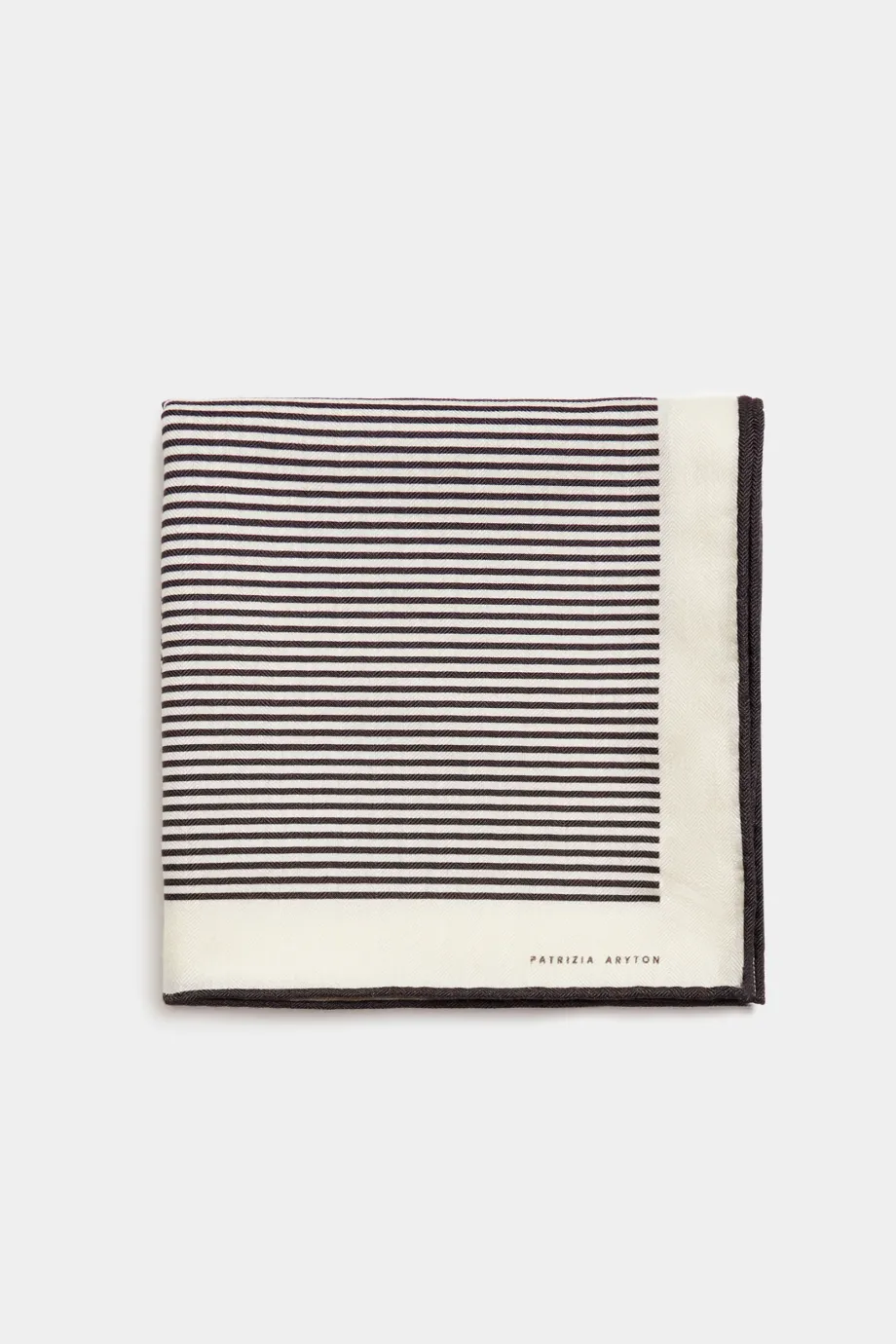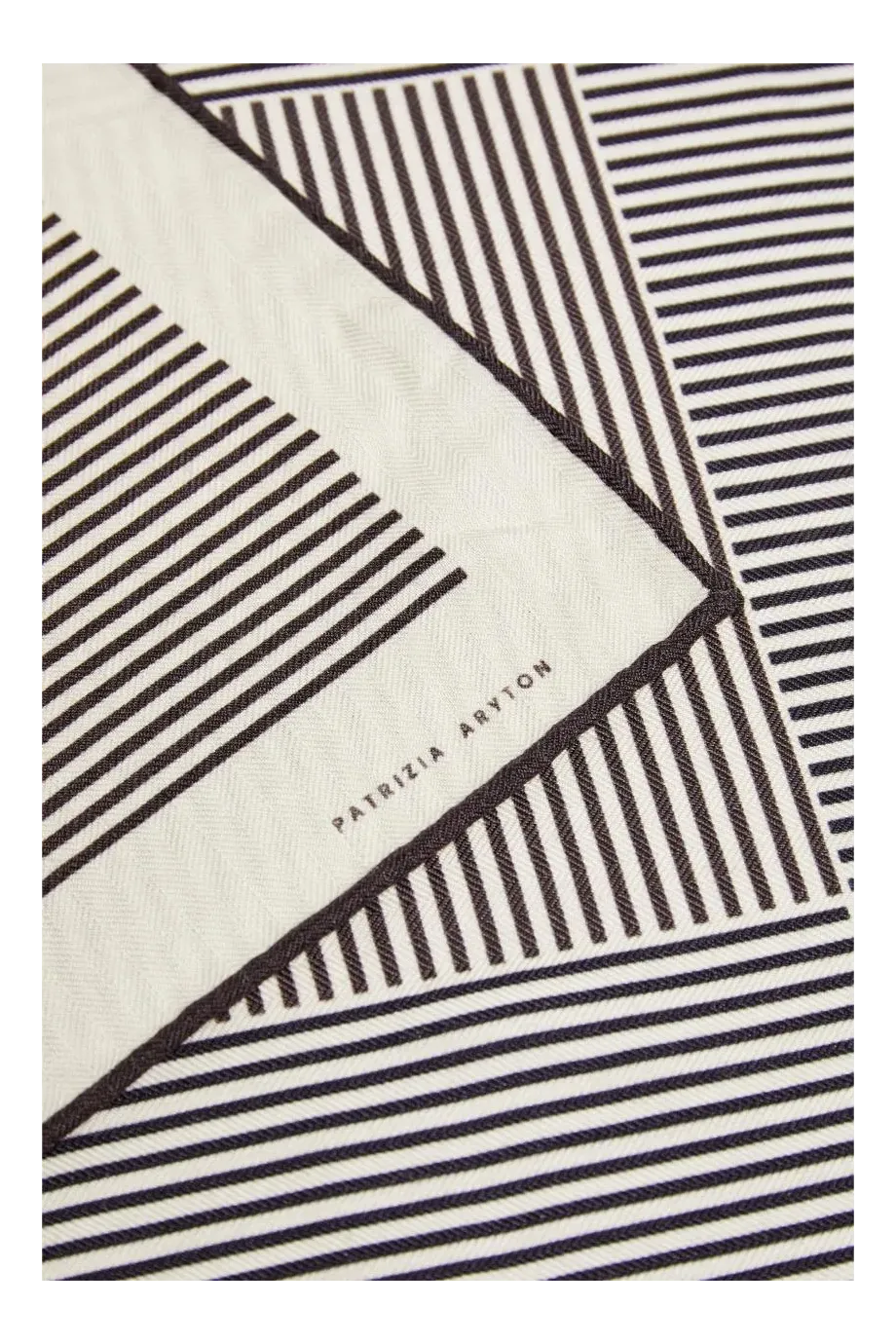 Eșarfă din lână și mătase, cu un model minimalist alb-negru. Moale și delicată la atingere.