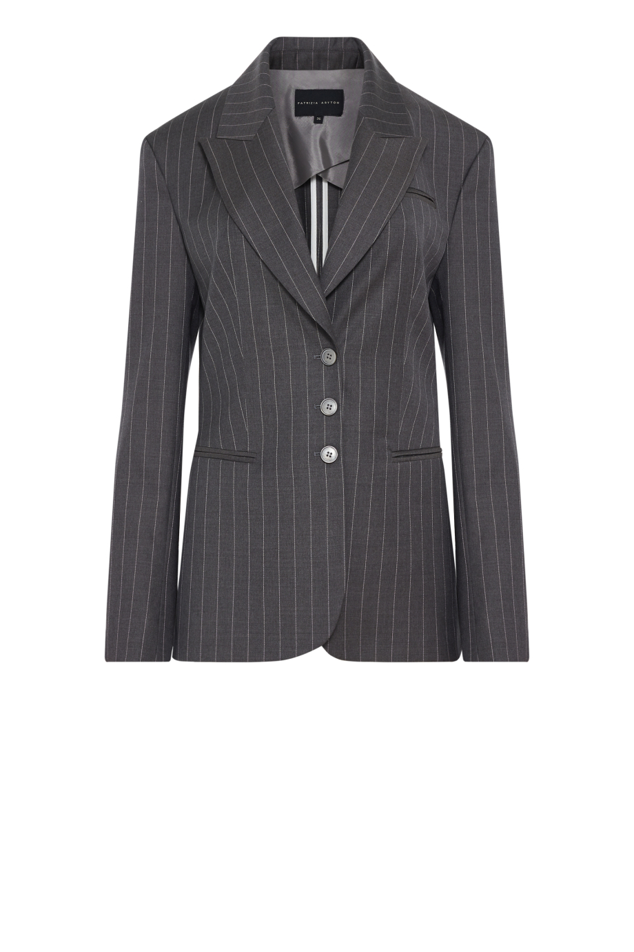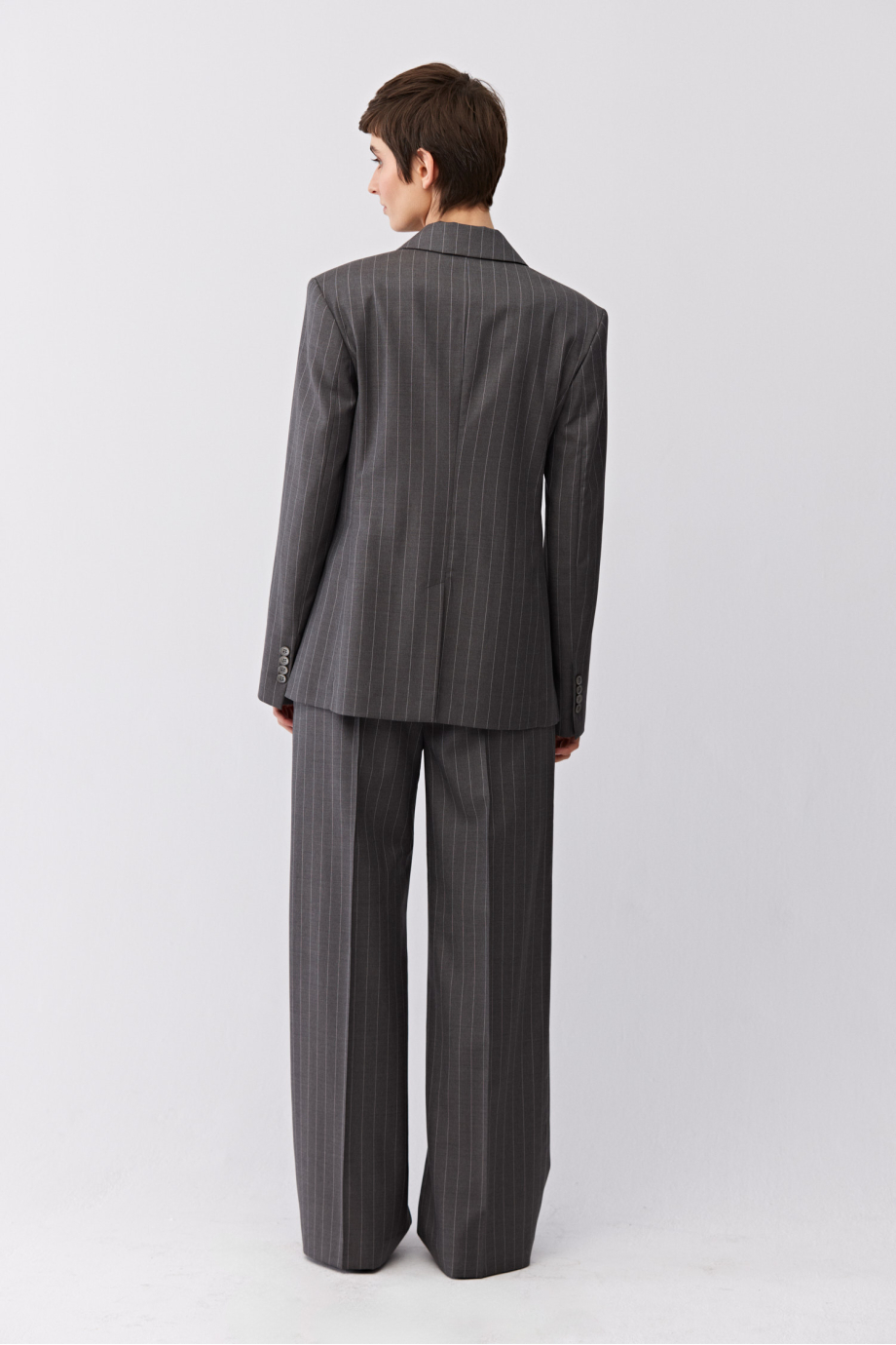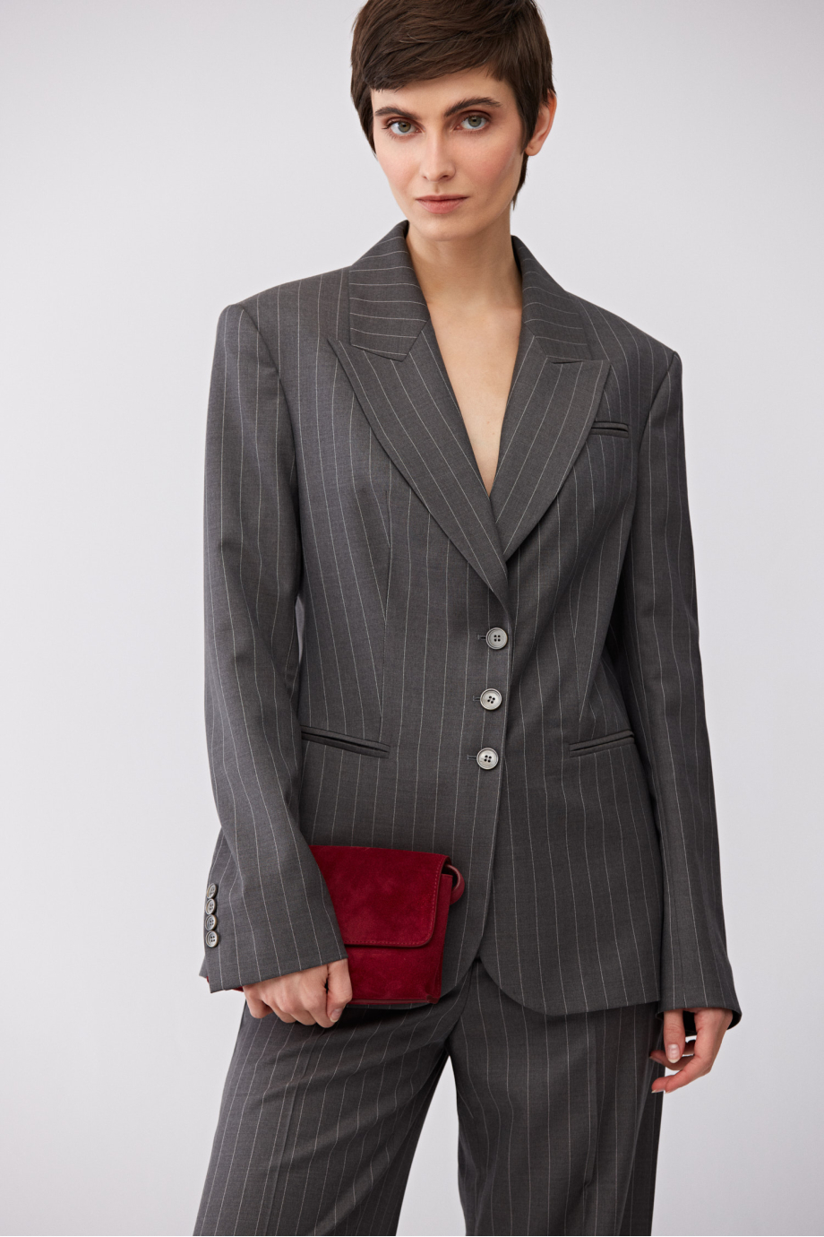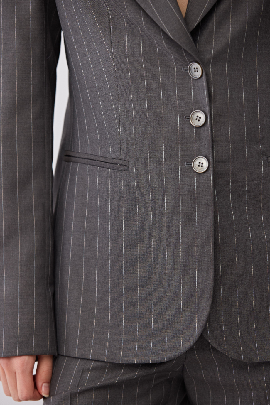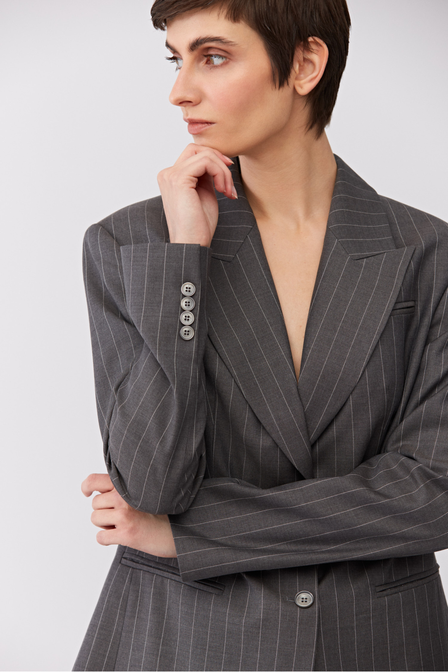 Sacou gri din lână virgină, cu dungi, pentru costum