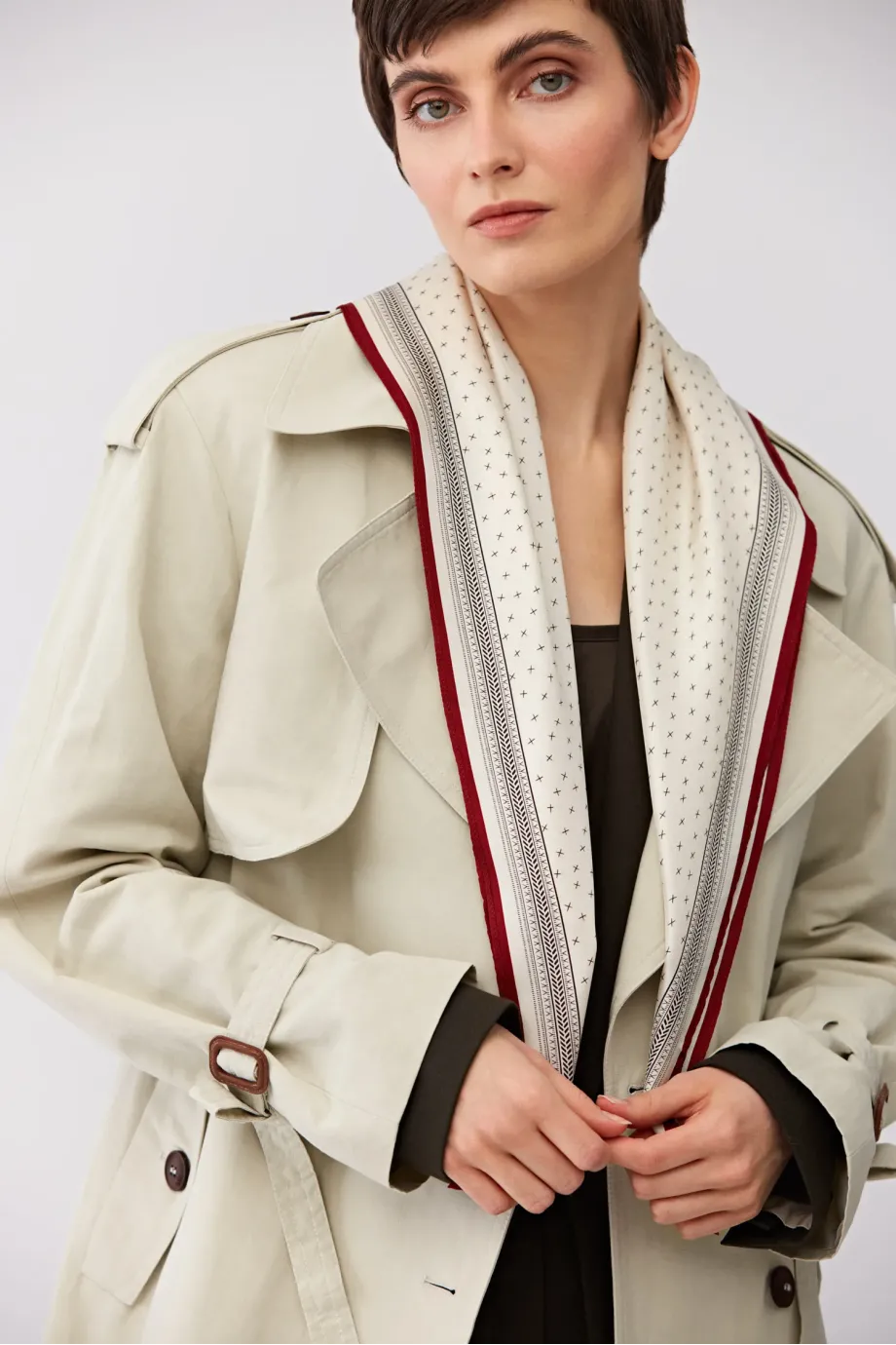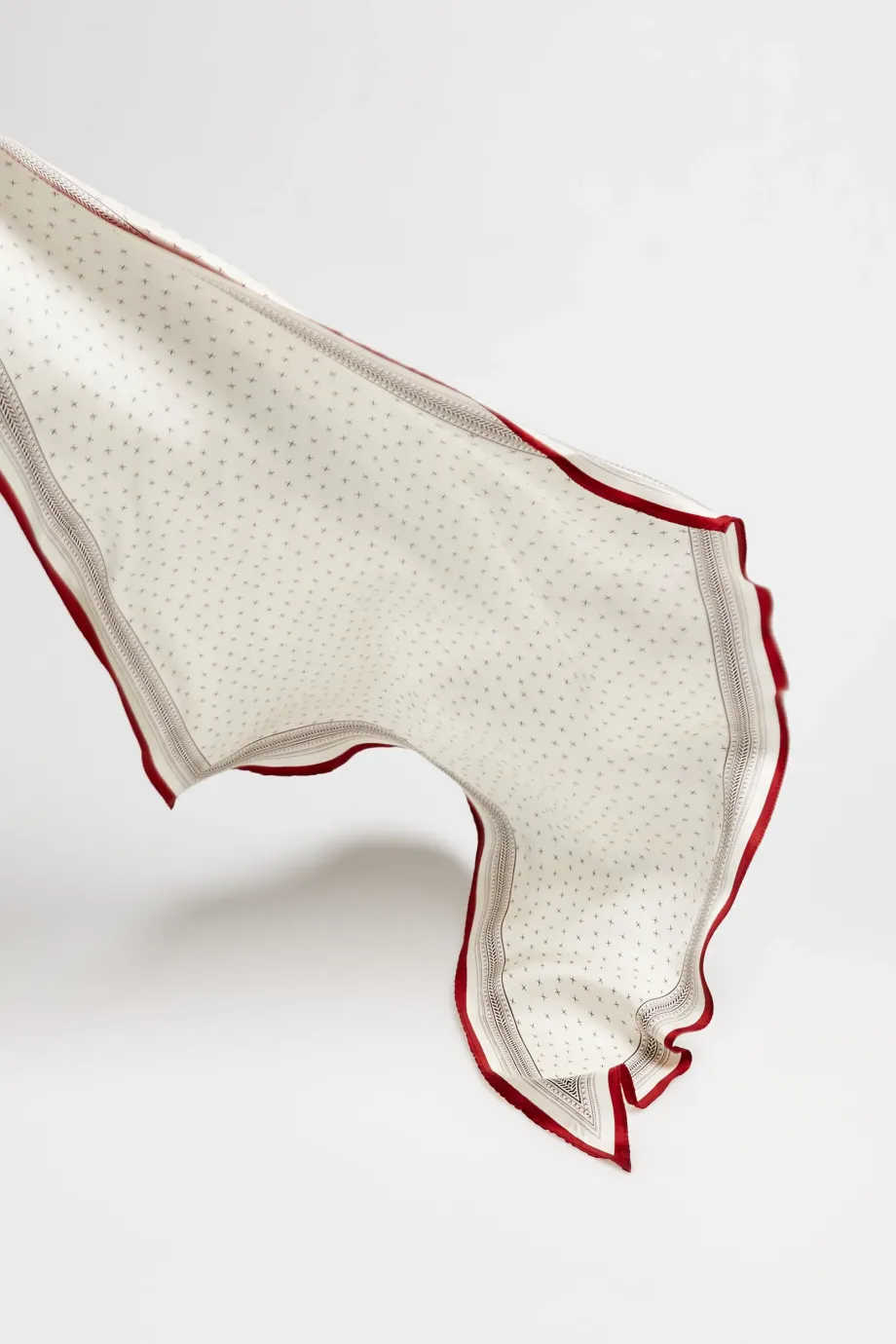 Eșarfă din mătase, cu un model minimalist. Moale, delicată la atingere.