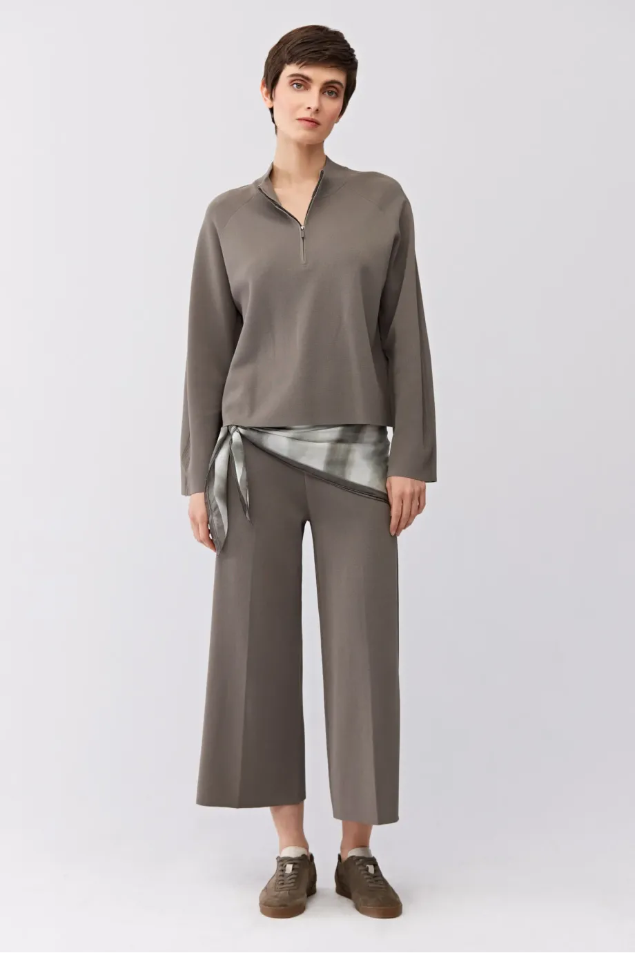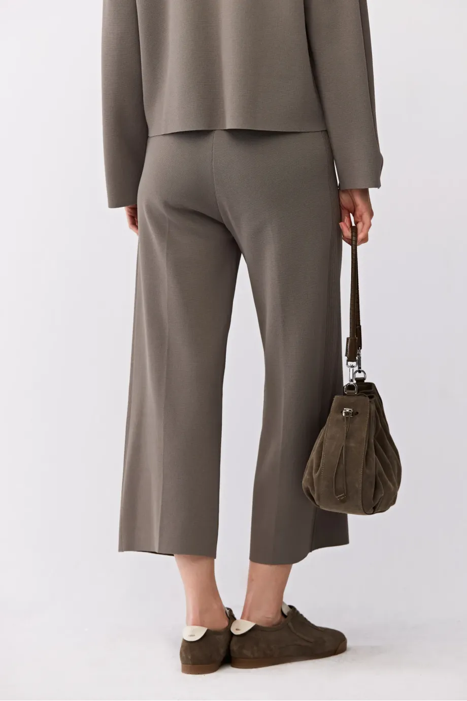 Pantaloni culotte din tricot. Crac drept cu bandă laterală, tricot moale care se adaptează siluetei. Culoare verde deschis. Pentru completarea setului este disponibil hanoracul din același material.