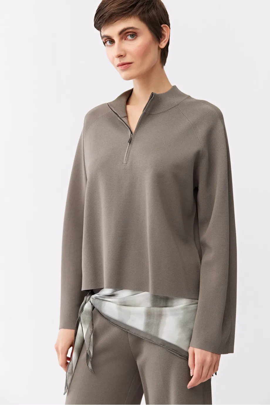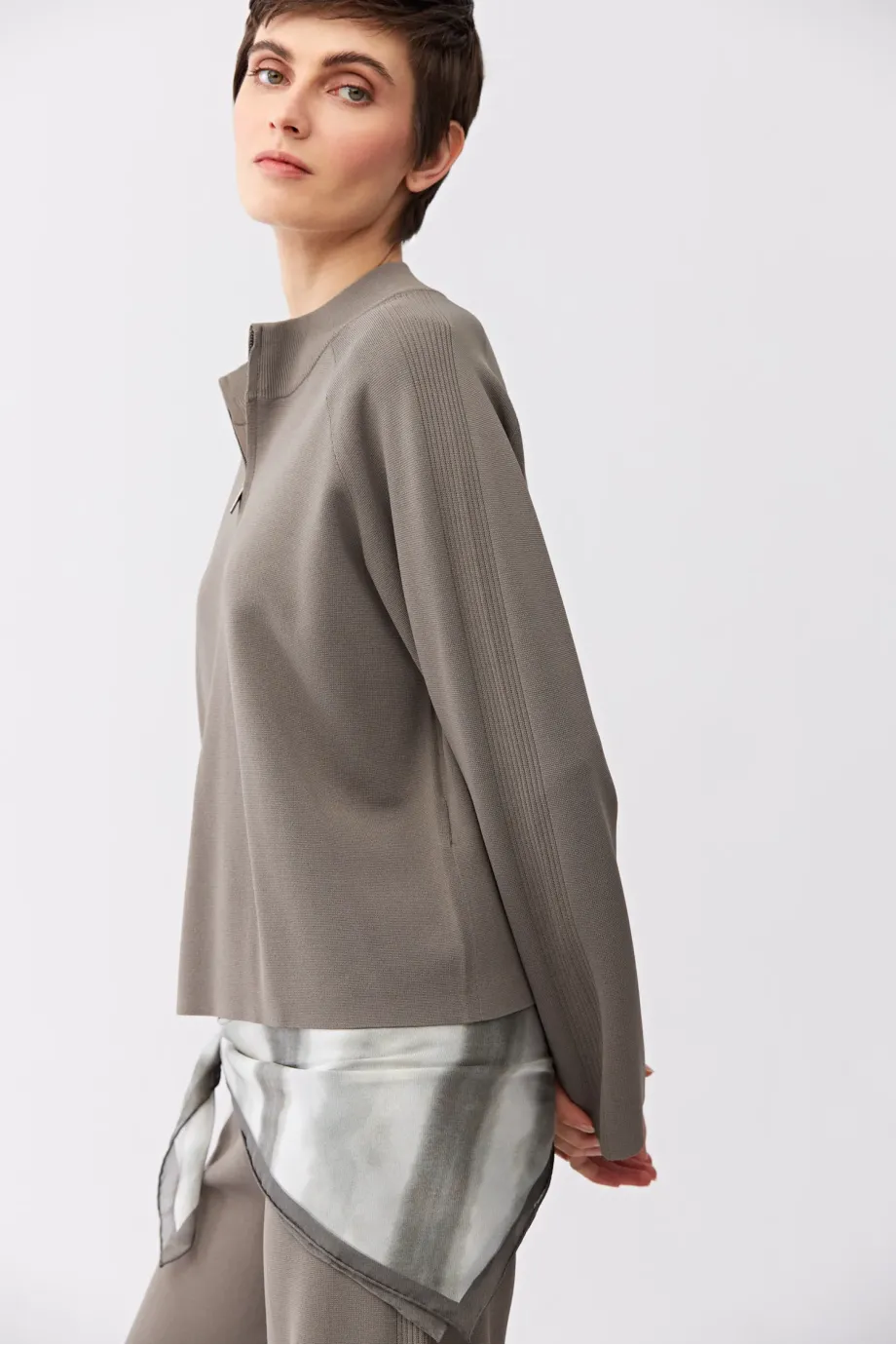 Hanorac din tricot cu textură fină, realizat pe mașină cu finețea 16 GG. Croială dreaptă, lejeră. Mânecă lungă. Închidere sub gât. Pentru completarea setului sunt disponibili pantalonii din același material. Culoare verde.