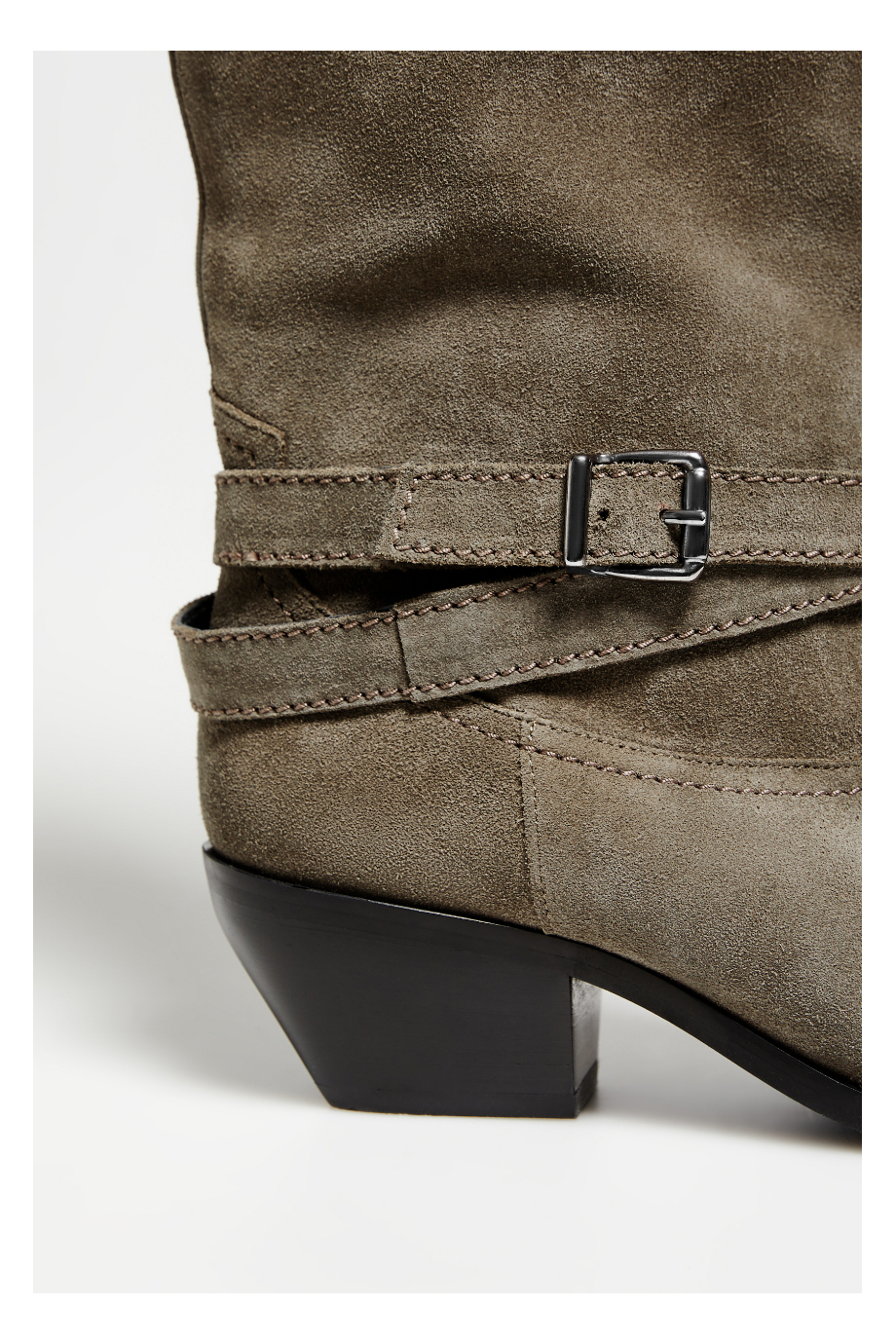 Cizme din piele întoarsă cu curea și cataramă