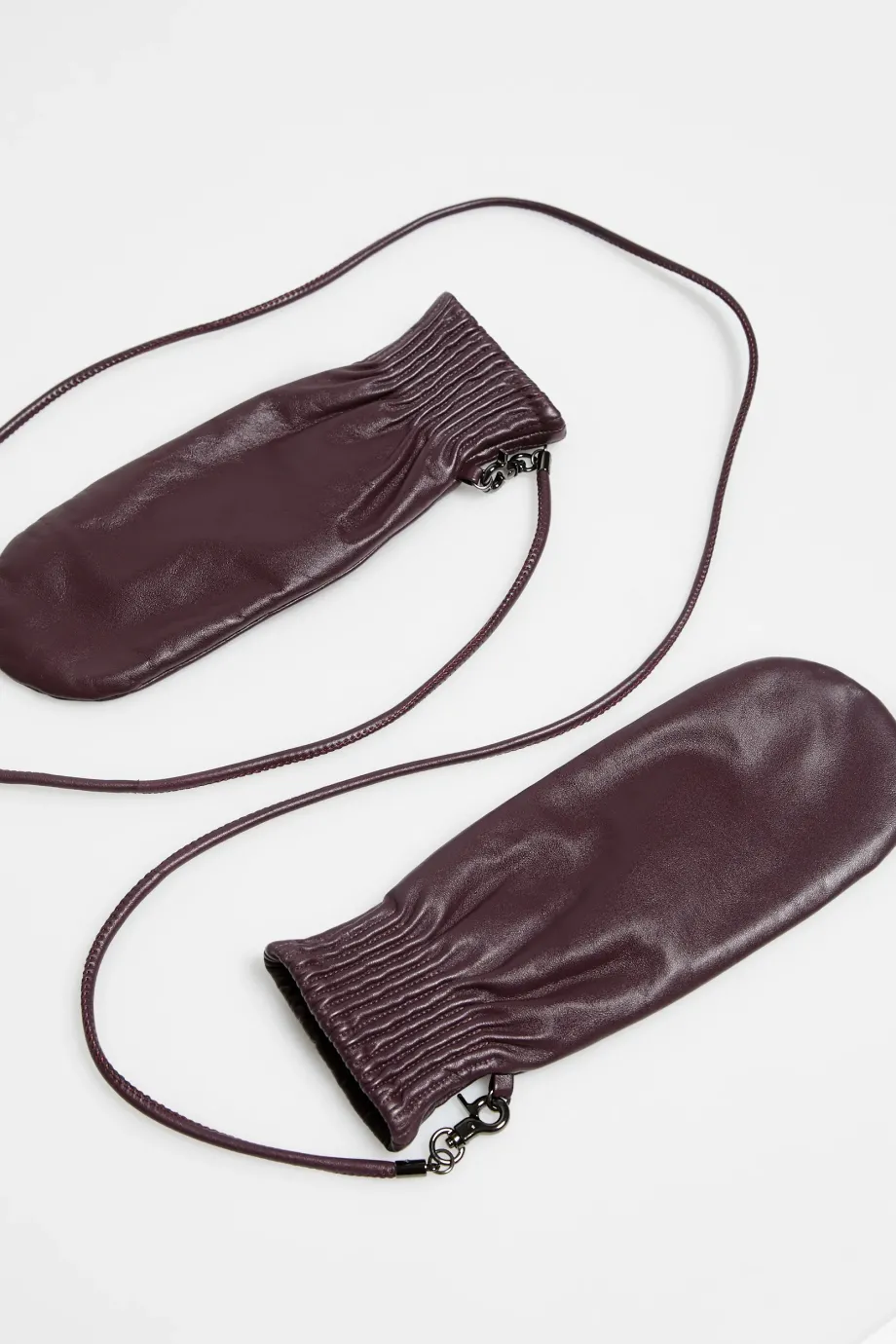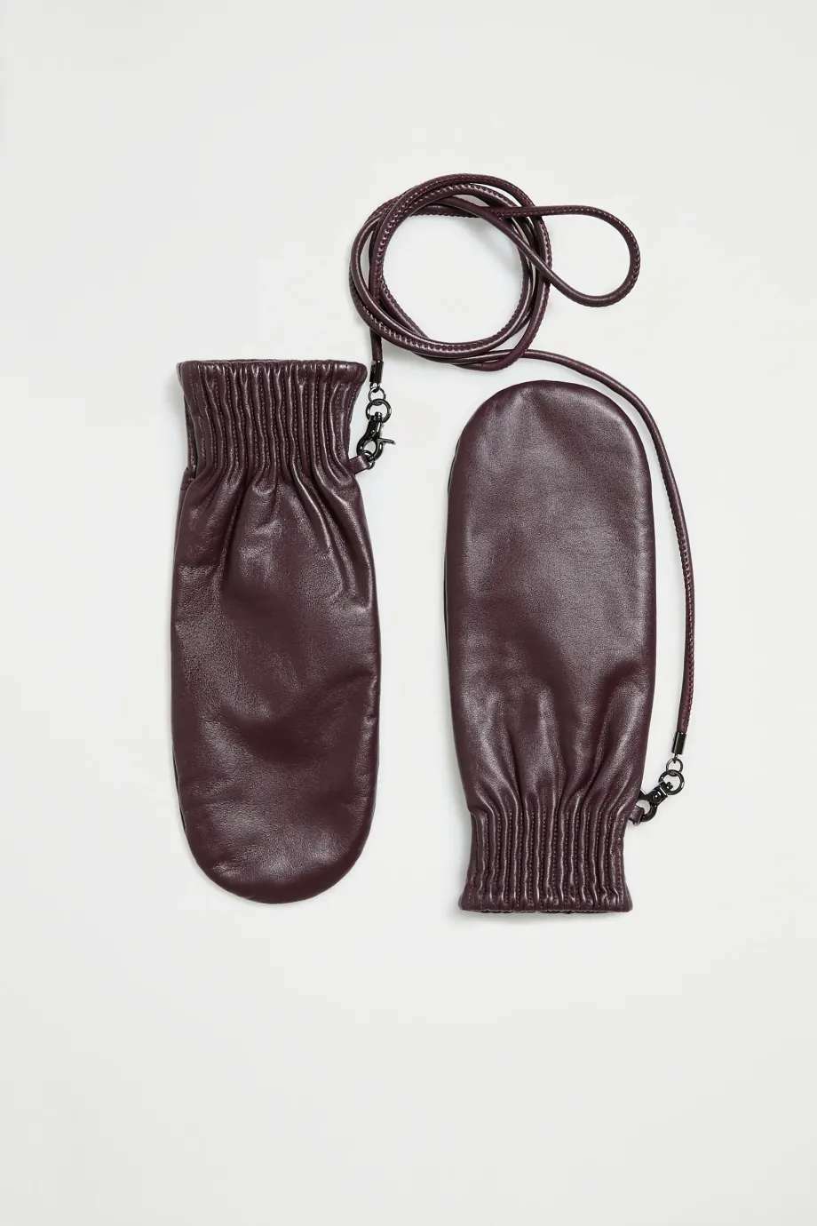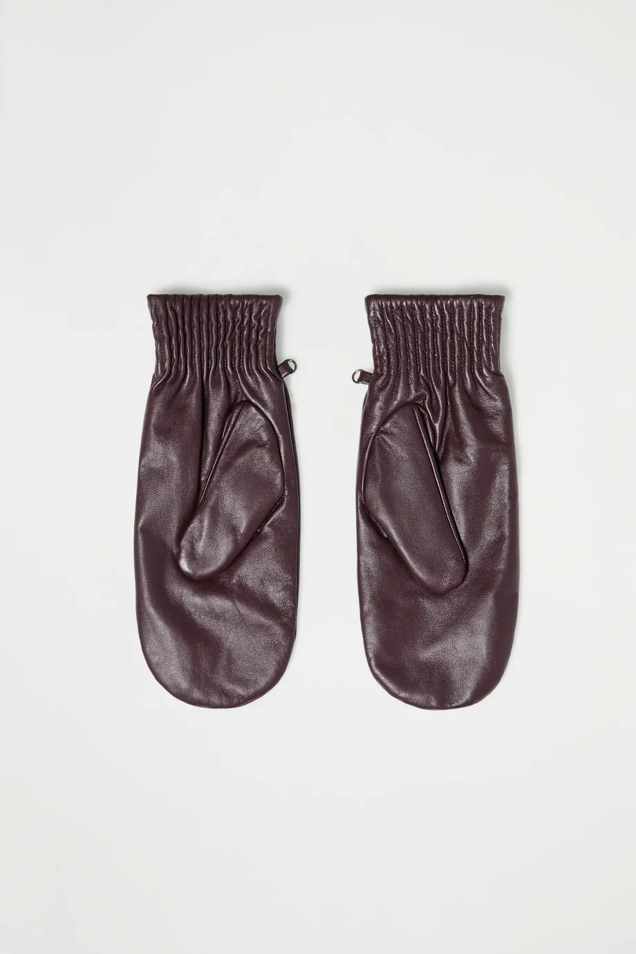 Mănuși de culoare maro, cu un singur deget, din piele naturală moale, cu căptușeală din lână și curea detașabilă.