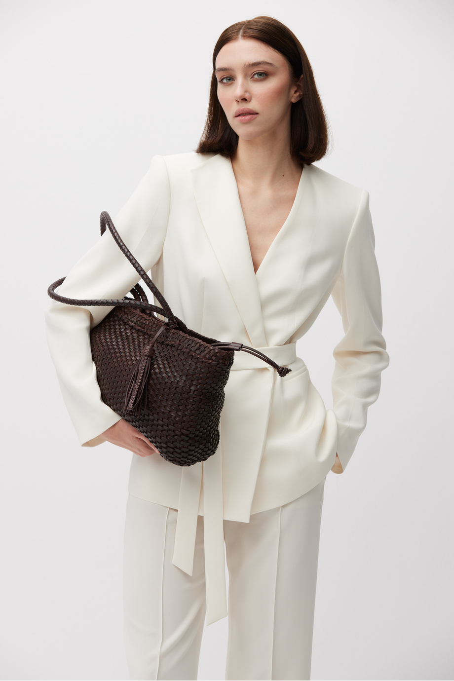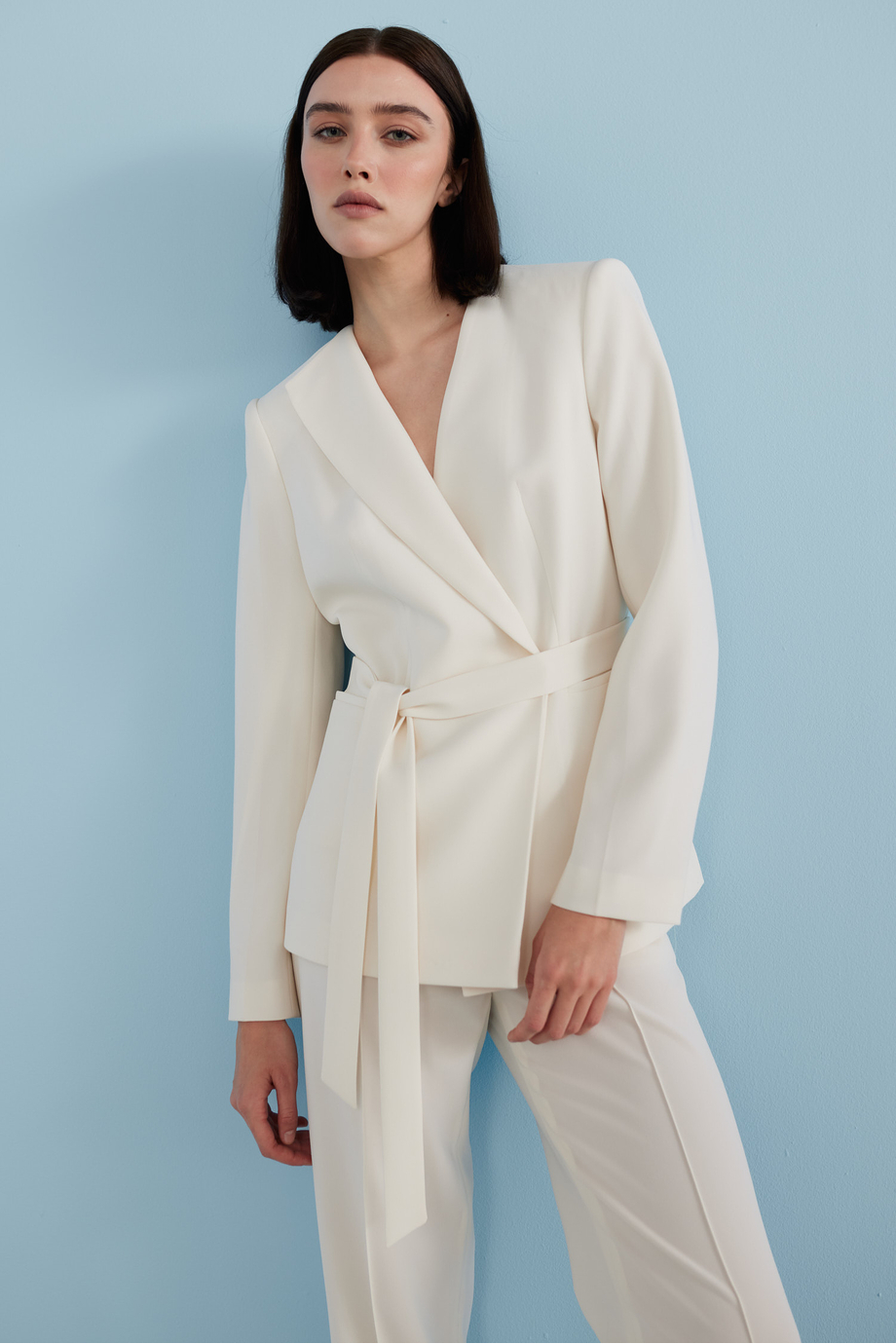 Sacou cu triacetat pentru costum. Poate fi purtat cu curea. Căptușeală. Mânecă lungă. Interior cu paspoal decorativ.
