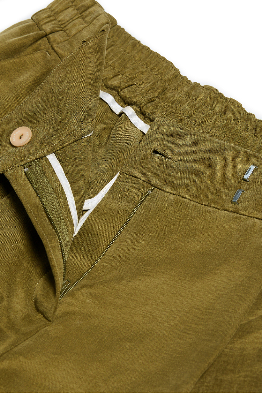 Pantaloni cu talie înaltă confecționați din amestec de lyocell și in. Picior larg, pense, închidere cu fermoar, cârlig și nasture corozo pe interior. Interior cu paspoal decorativ. Buzunare. Culoare: verde. Pentru completarea setului – sacou din aceeași țesătură.