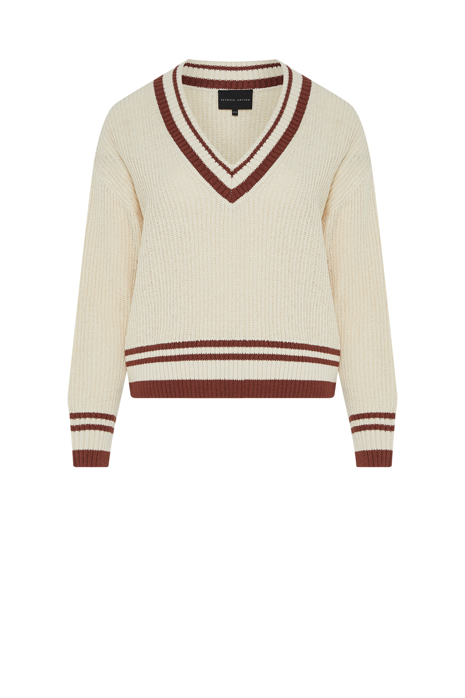 Pulover bej cu decolteu în V din bumbac și in