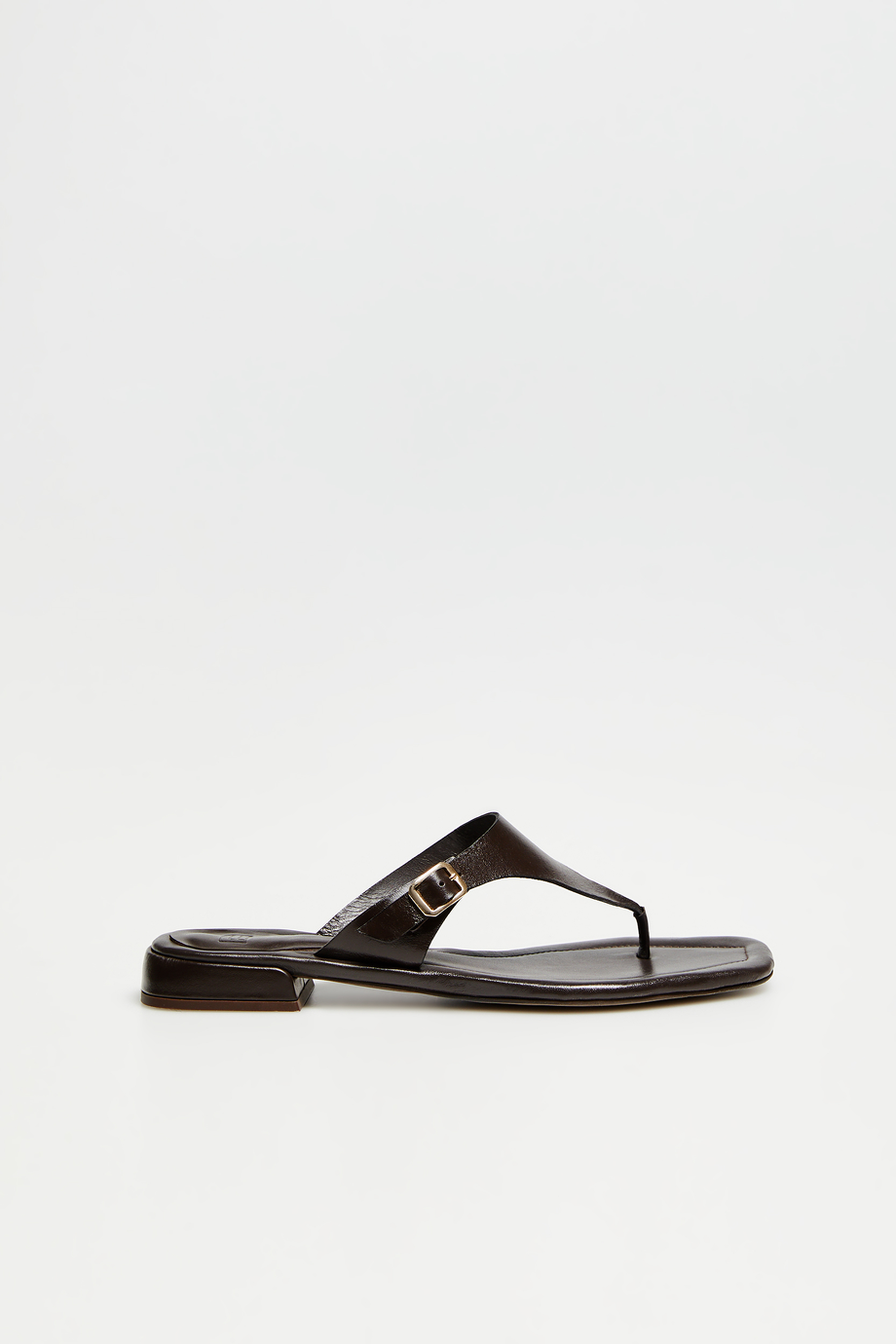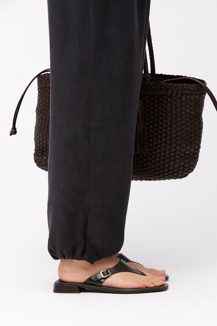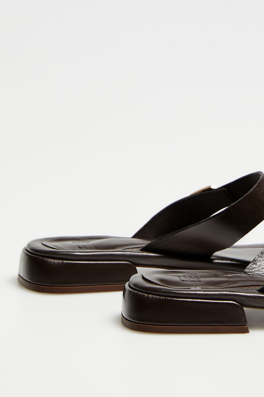 Papuci negri cu toc mic tip „kitten heel”, realizați din piele moale de bovină și capră. Confecționați manual într-o manufactură spaniolă.