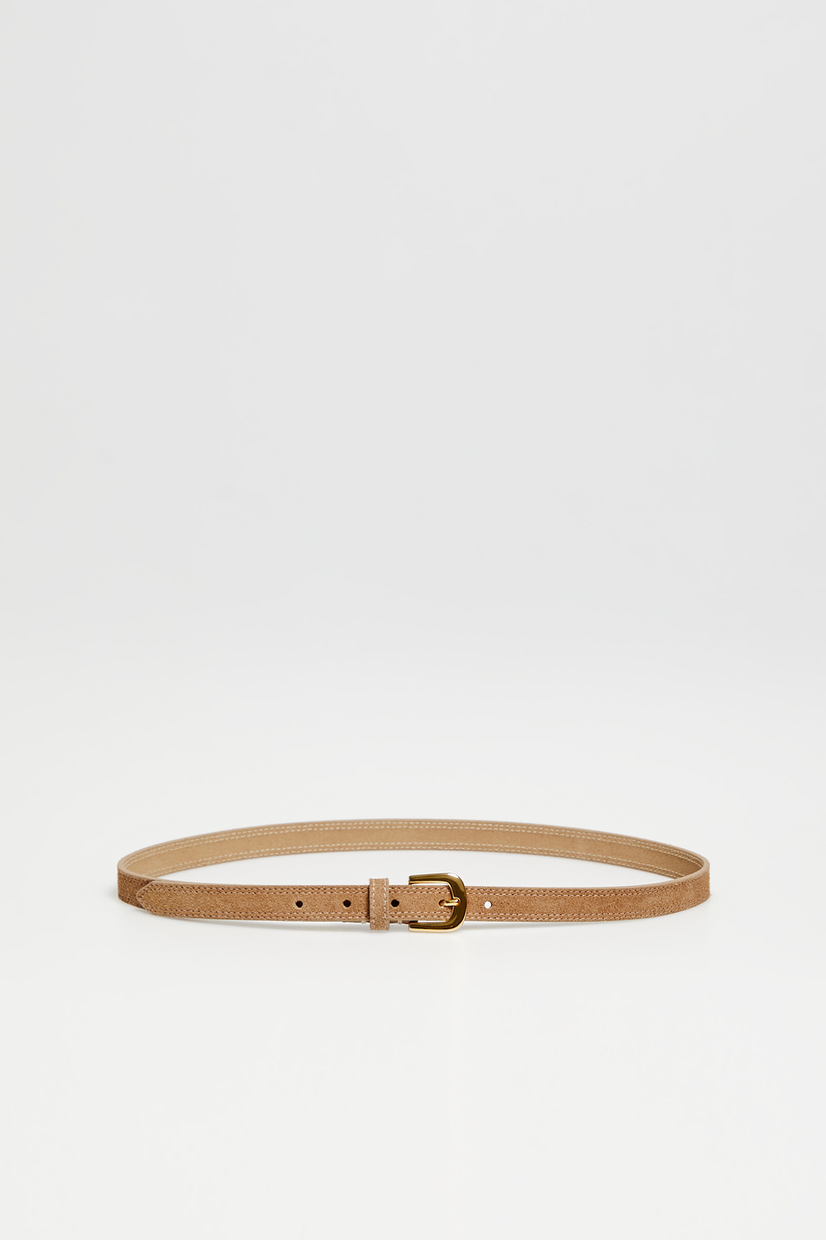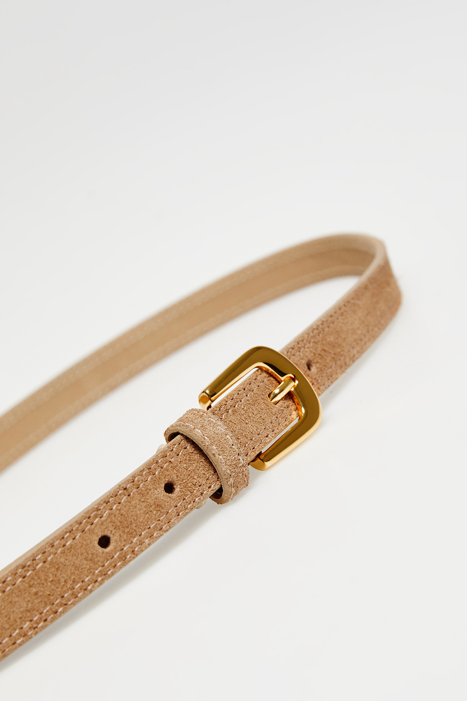Curea subțire din piele întoarsă. Cataramă în culoarea aurie. Culoare coniac. Model realizat într-o manufactură portugheză.